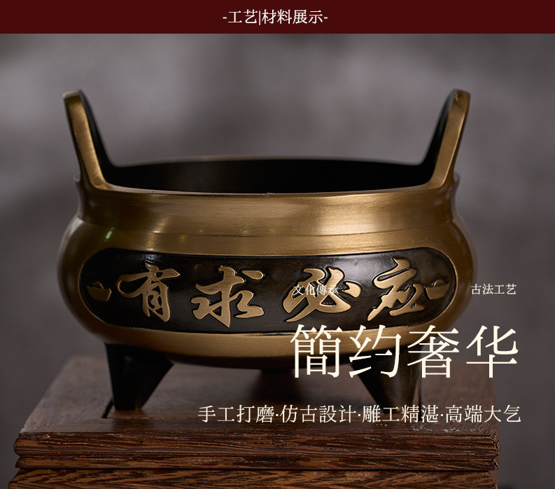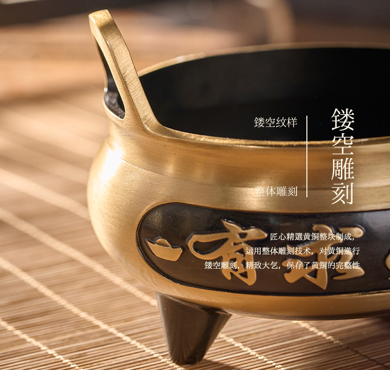 带耳三足香炉进宝室内供奉供佛有求必应办公室黄铜香炉摆件