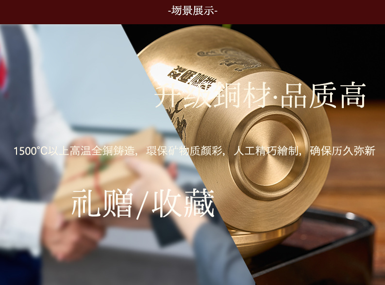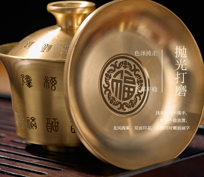 黄铜盖碗黄铜百福盖碗铜茶碗摆件工艺品碗百福碗百福米缸茶具茶桌