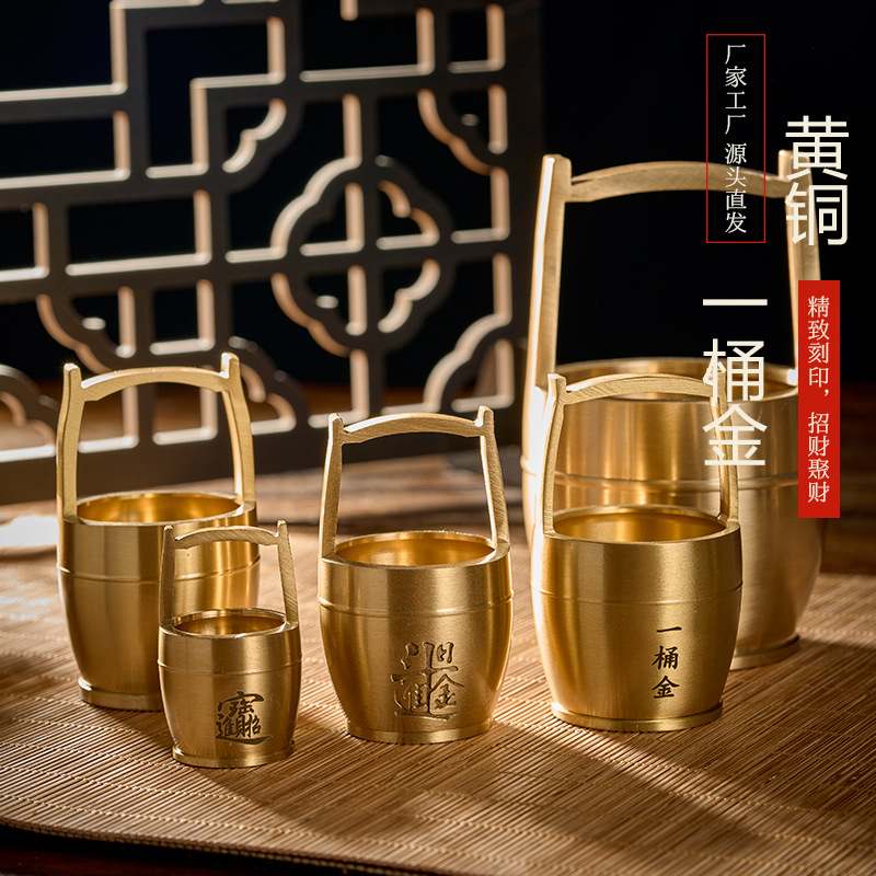 纯黄铜一桶金摆件缸金进宝大水桶办公桌客厅桌面创意工艺品加元宝
