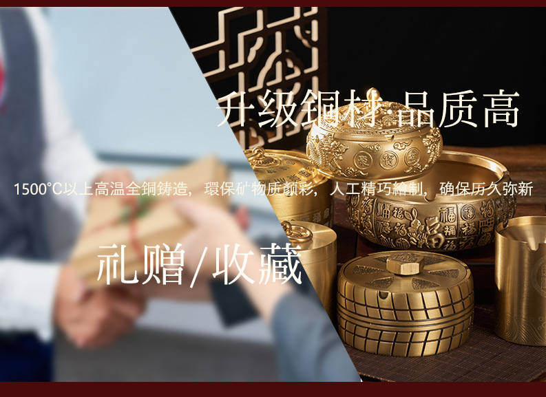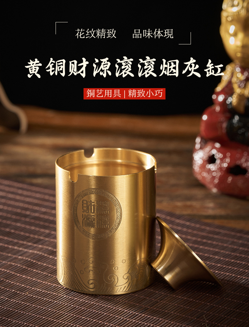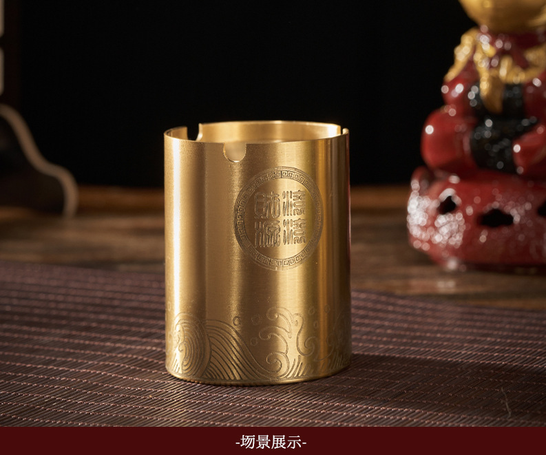 黄铜车载烟灰缸带盖个性简约家用办公室复古中式烟灰缸批发