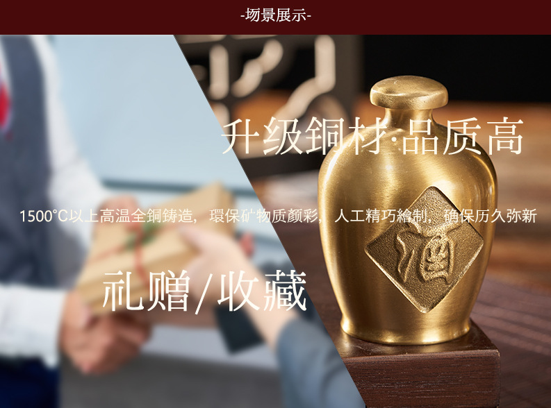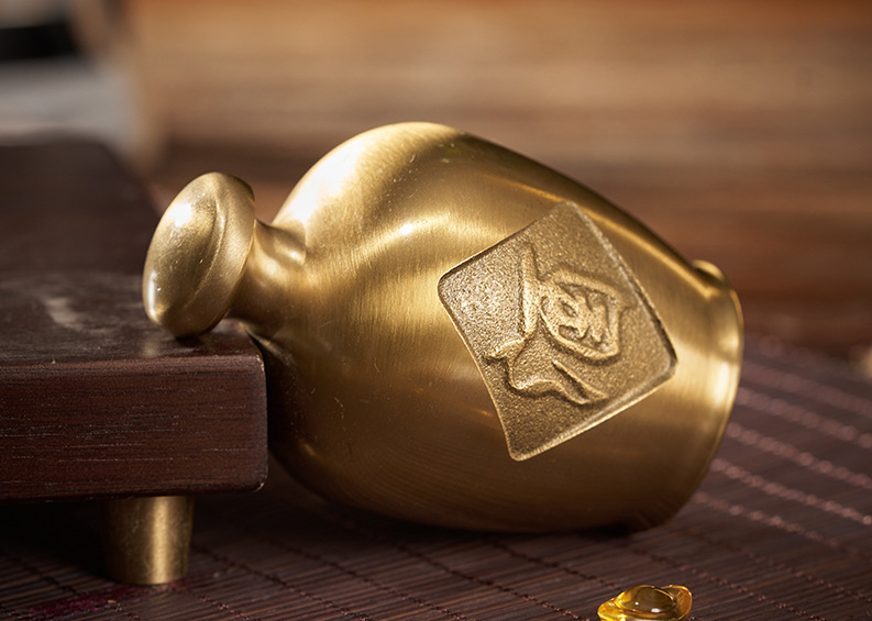 黄铜酒坛迷你手把件礼品铜酒壶摆件酒杯装饰工艺品小酒瓶