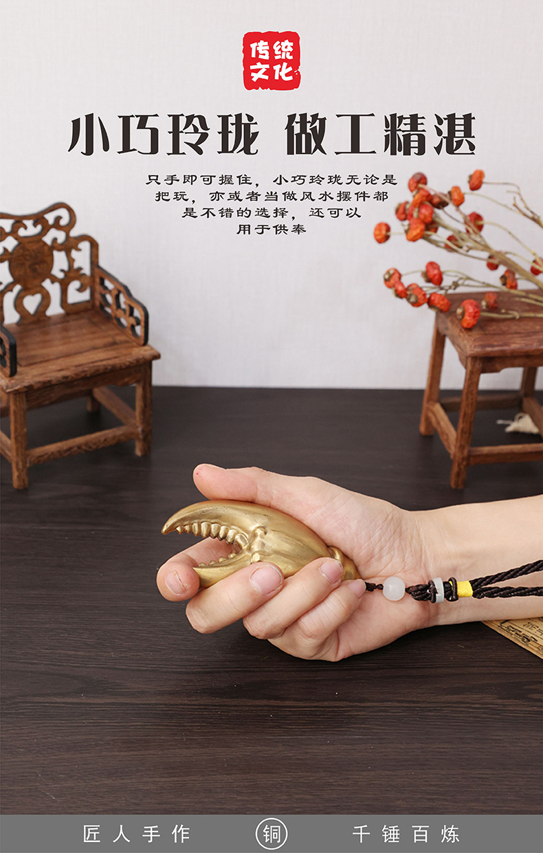 纯黄铜手中有钳创意手把件螃蟹钳男士礼品工艺品把玩招米摆件批发