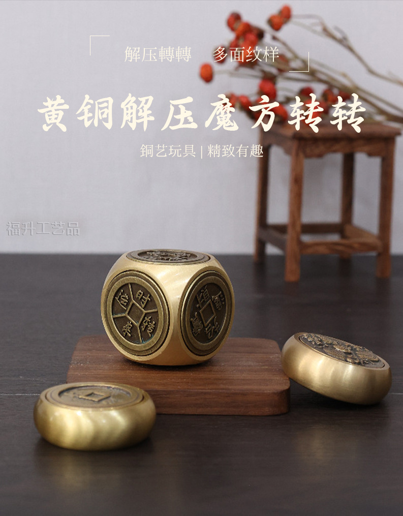 加工定制六面转转钱黄铜扭转乾坤进宝黄铜解压魔方手把件铜工艺品