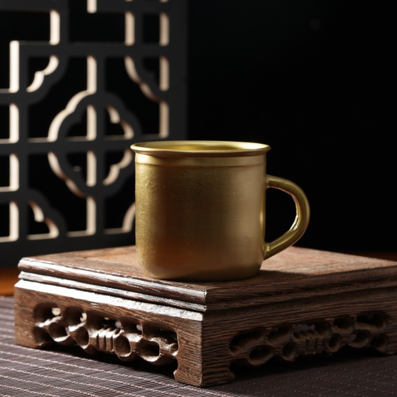 黄铜小茶杯茶缸黄铜工艺品摆件茶壶茶杯办公室茶室摆件工艺品
