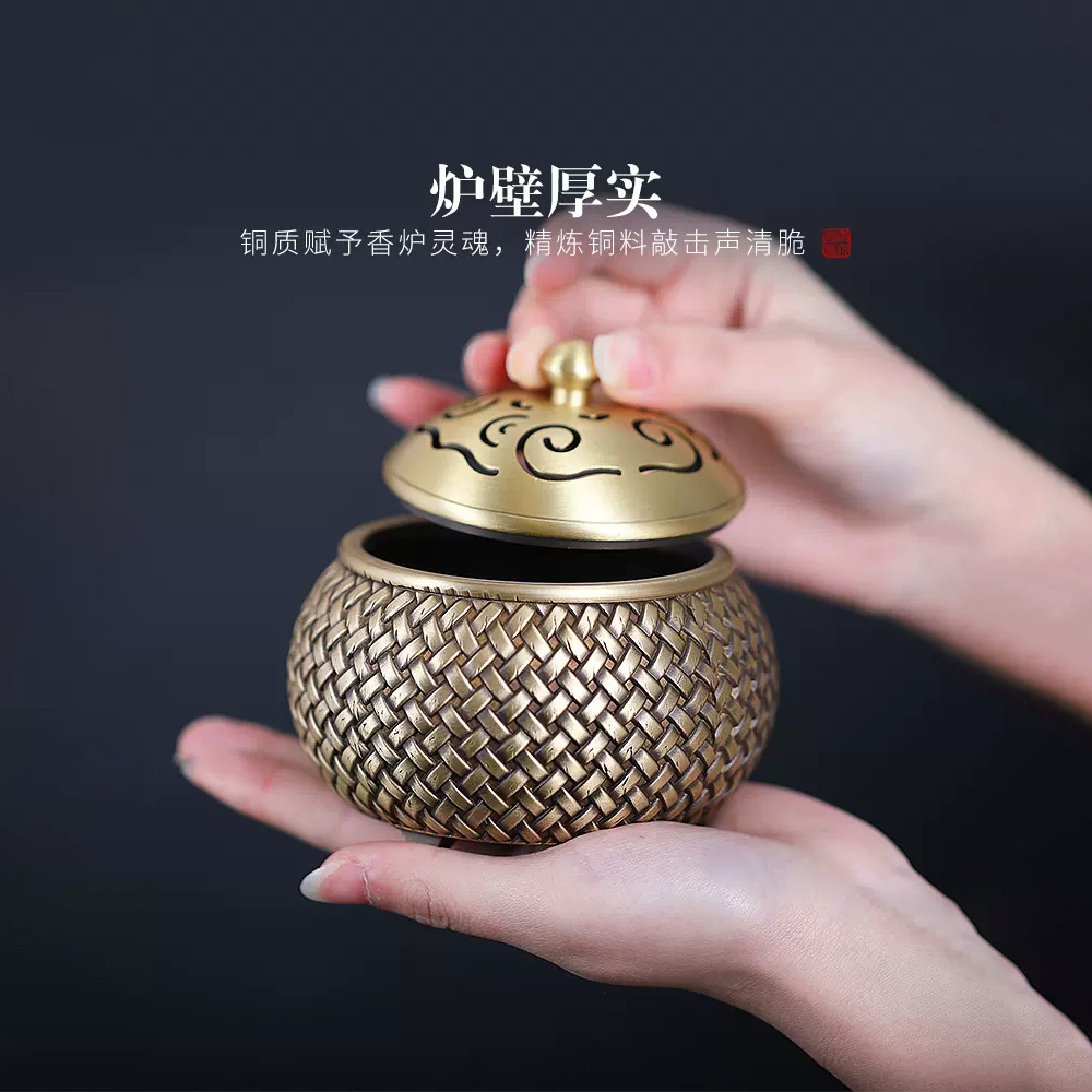 香薰炉小众纯铜香炉家用织梦如意香炉檀香熏香炉茶道香道供奉摆件