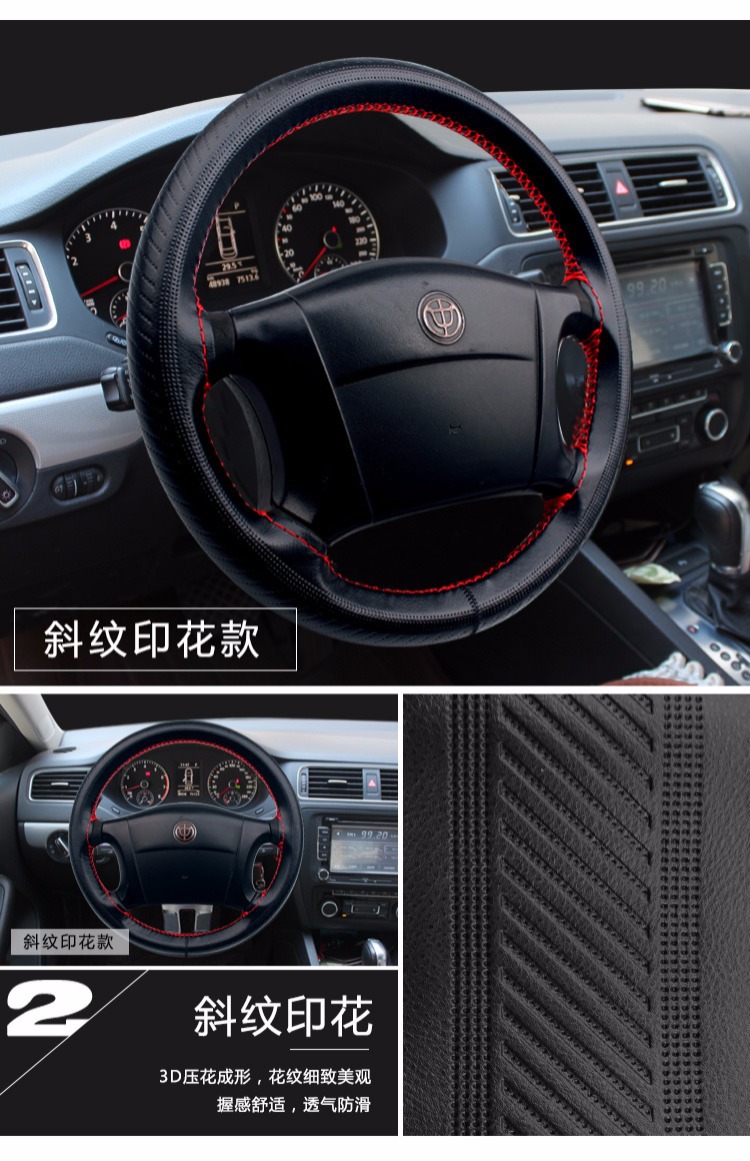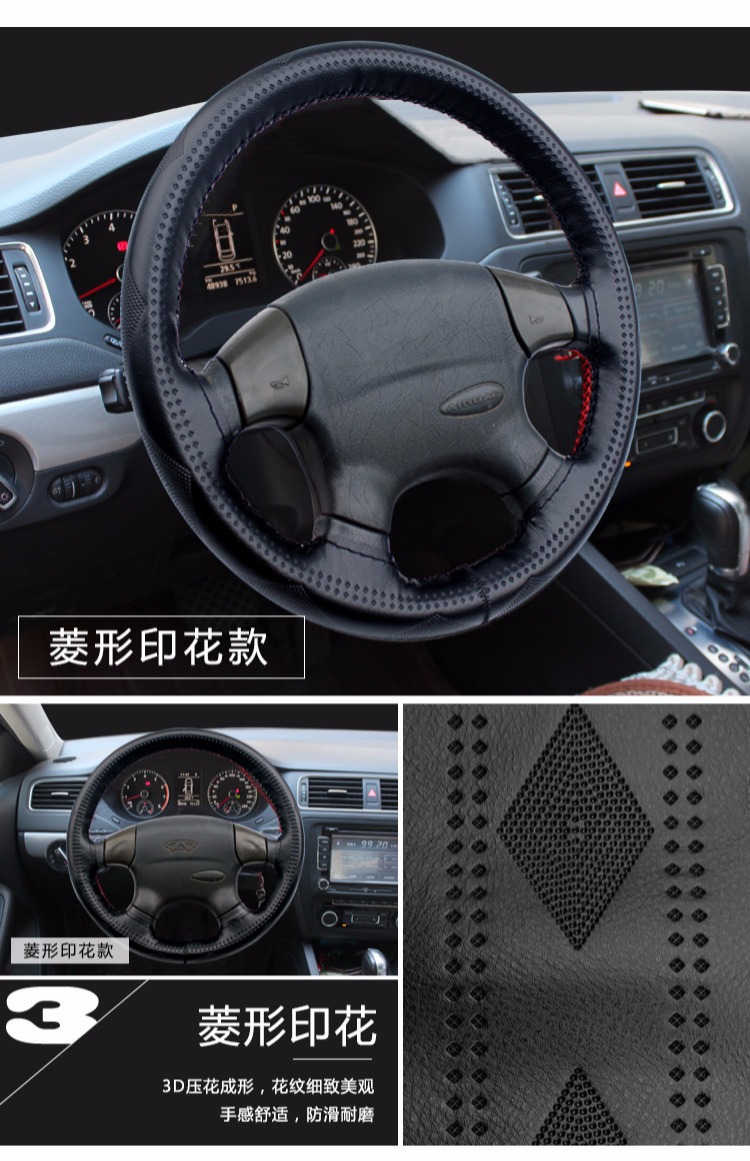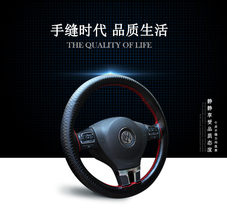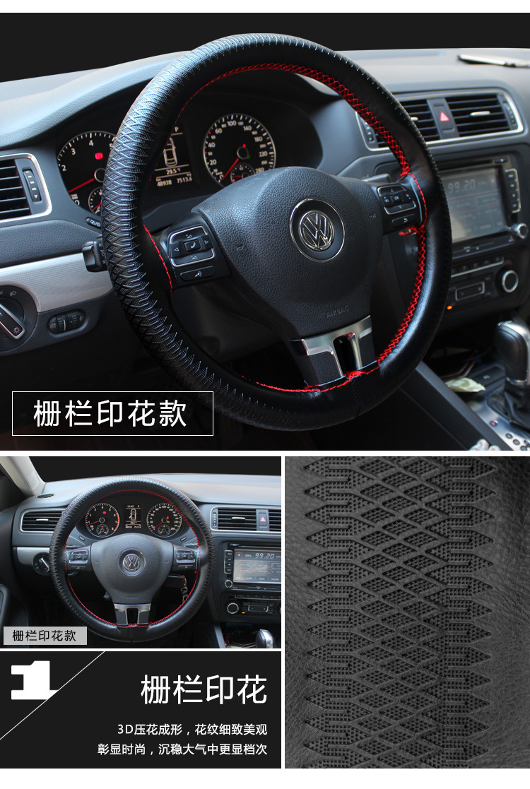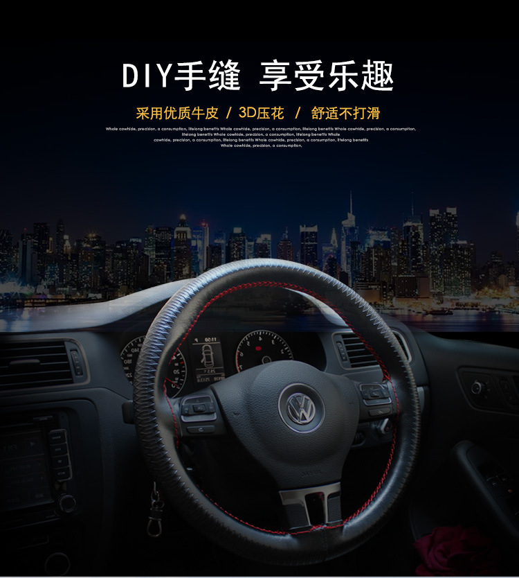 新汽车方向盘套真皮手缝方向盘套男女四季通用型大众防滑手缝把套