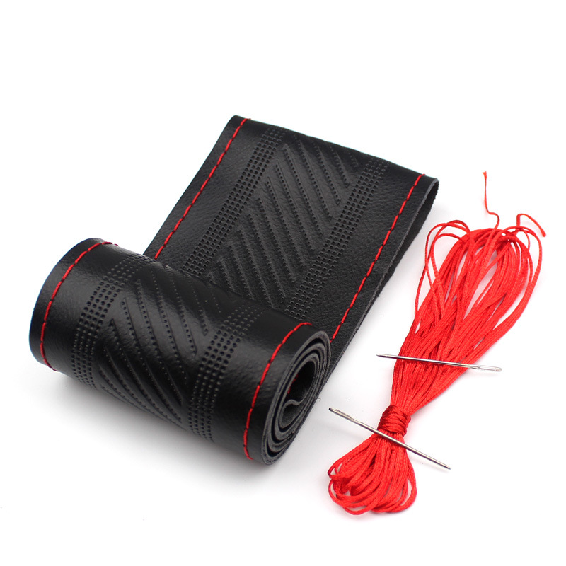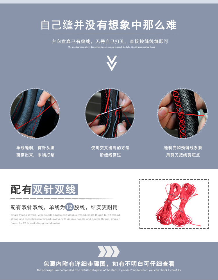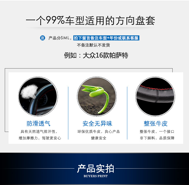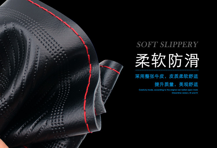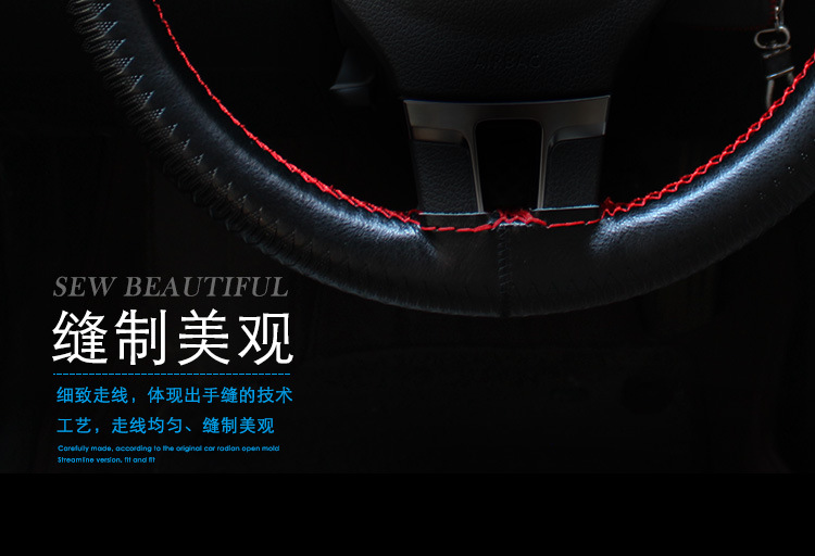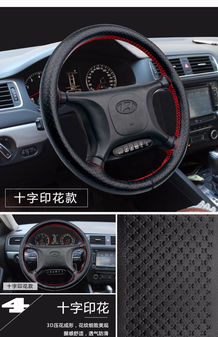 新汽车方向盘套真皮手缝方向盘套男女四季通用型大众防滑手缝把套
