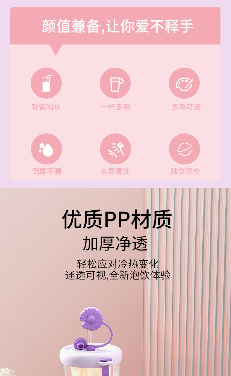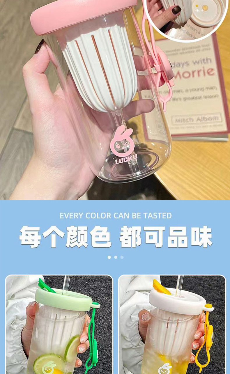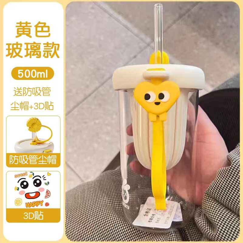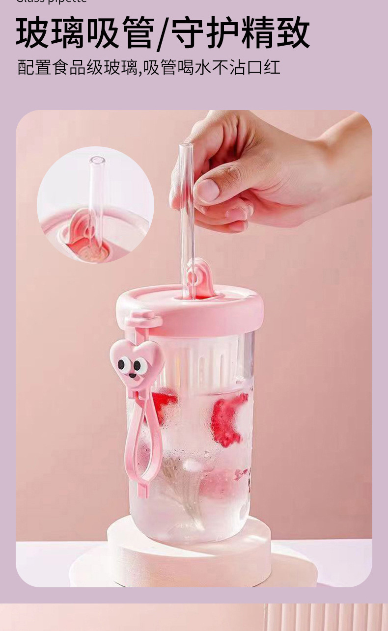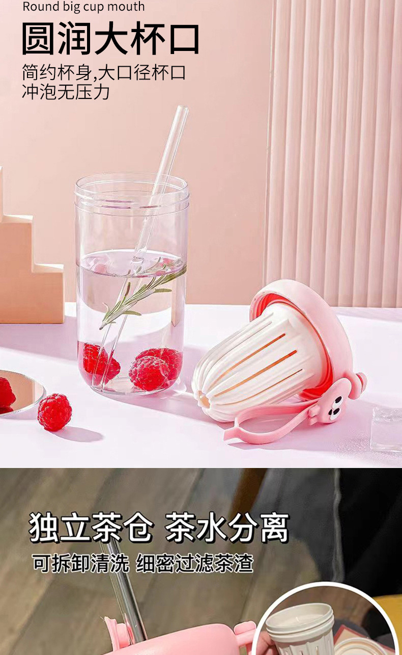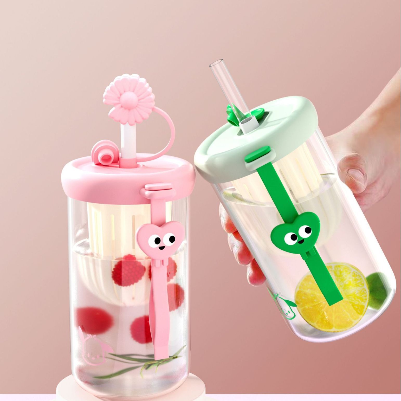 新款玻璃泡茶随行便携茶水分离杯女生高颜值吸管杯子大眼仔水杯