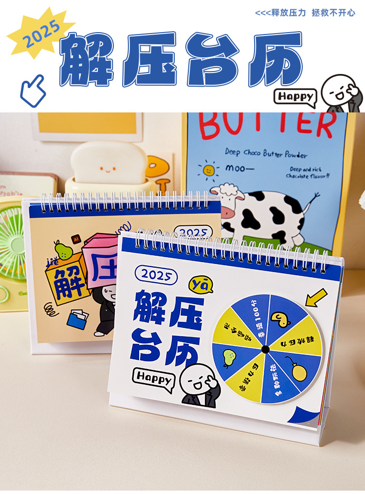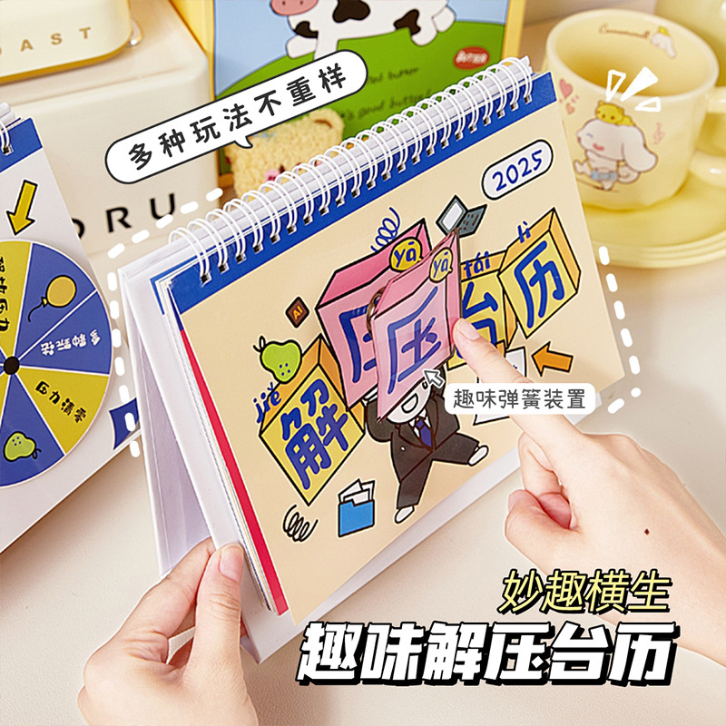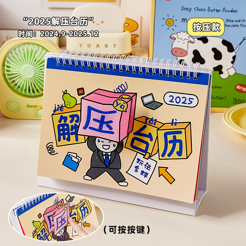 日历2025年解压台历创意趣味脑洞多功能日历转盘按压娱乐桌面摆件
