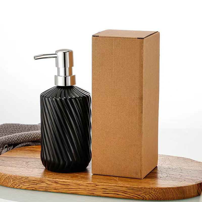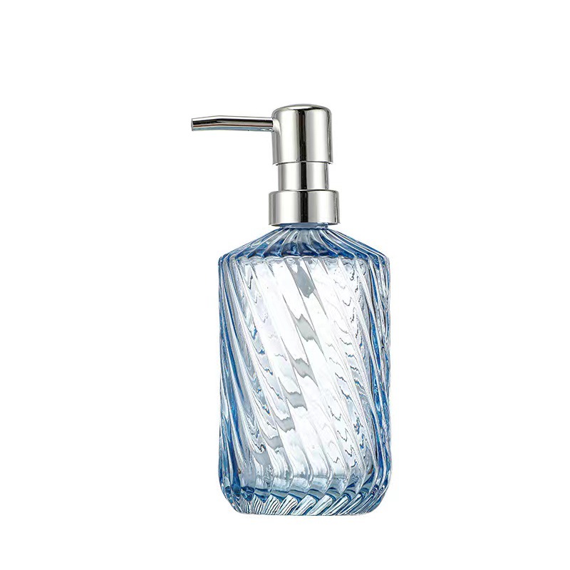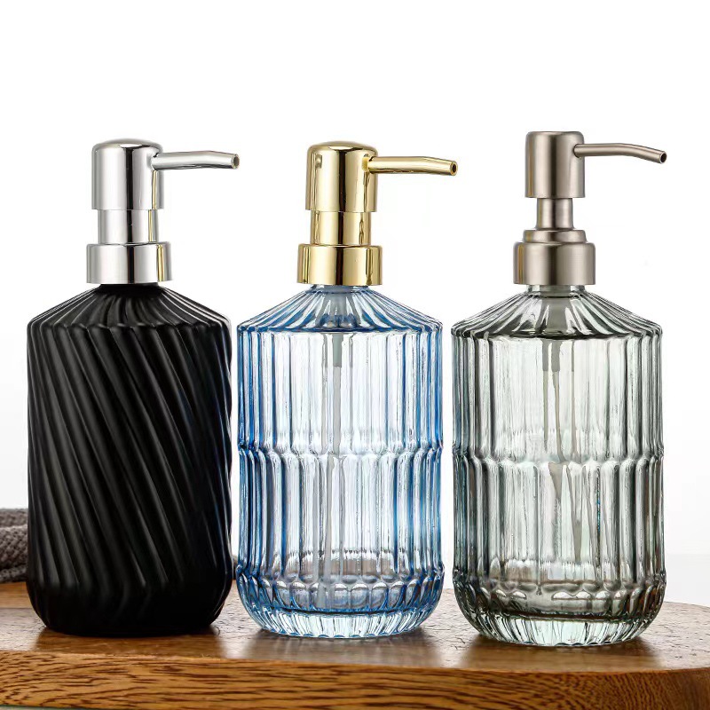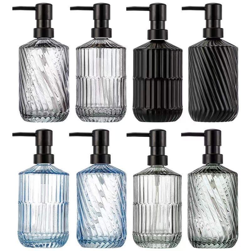 批发套装按压斜纹圆形洗手液瓶玻璃皂液分装卫浴用洗发露沐浴露瓶