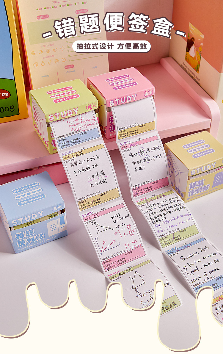 抽拉式错题便利贴初高中生女生专用高颜值便签纸高效学习订正纸