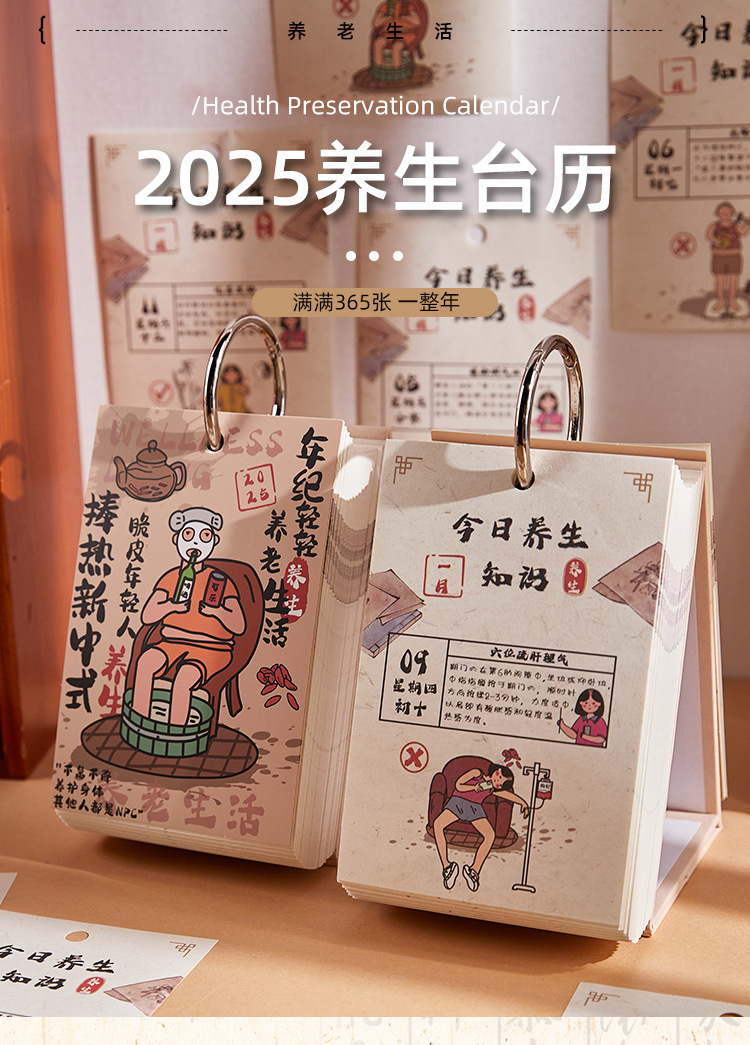 2025年新款趣味养生台历创意新中式365天手撕日历桌面小摆件礼物