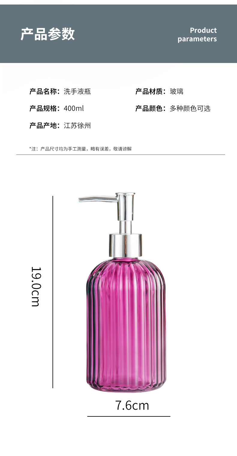 亚马逊跨境400ml洗手液瓶简约竖条纹按压乳液皂液器乳液分装瓶