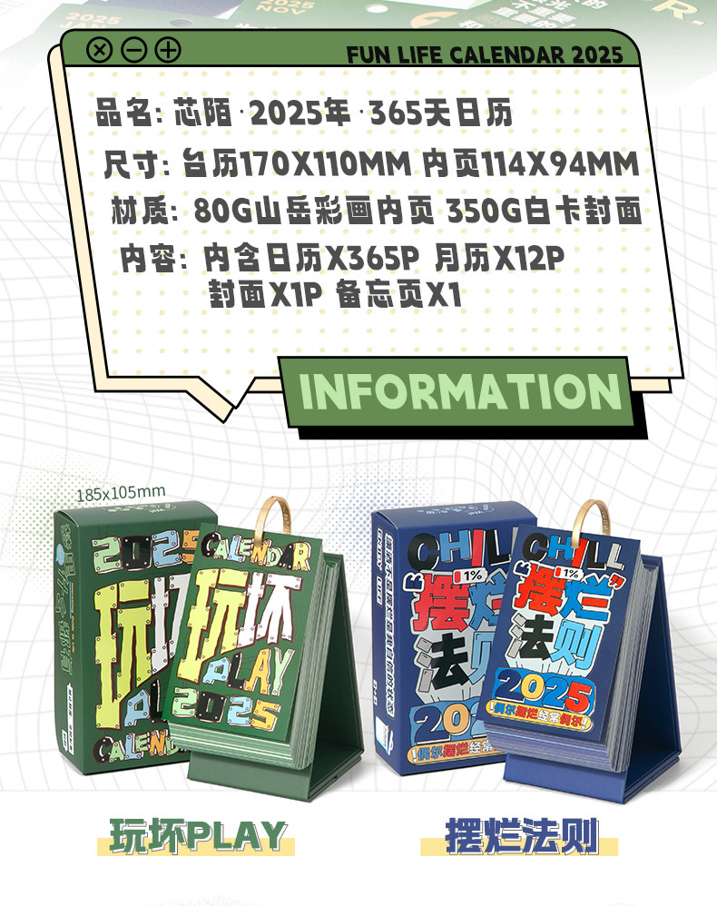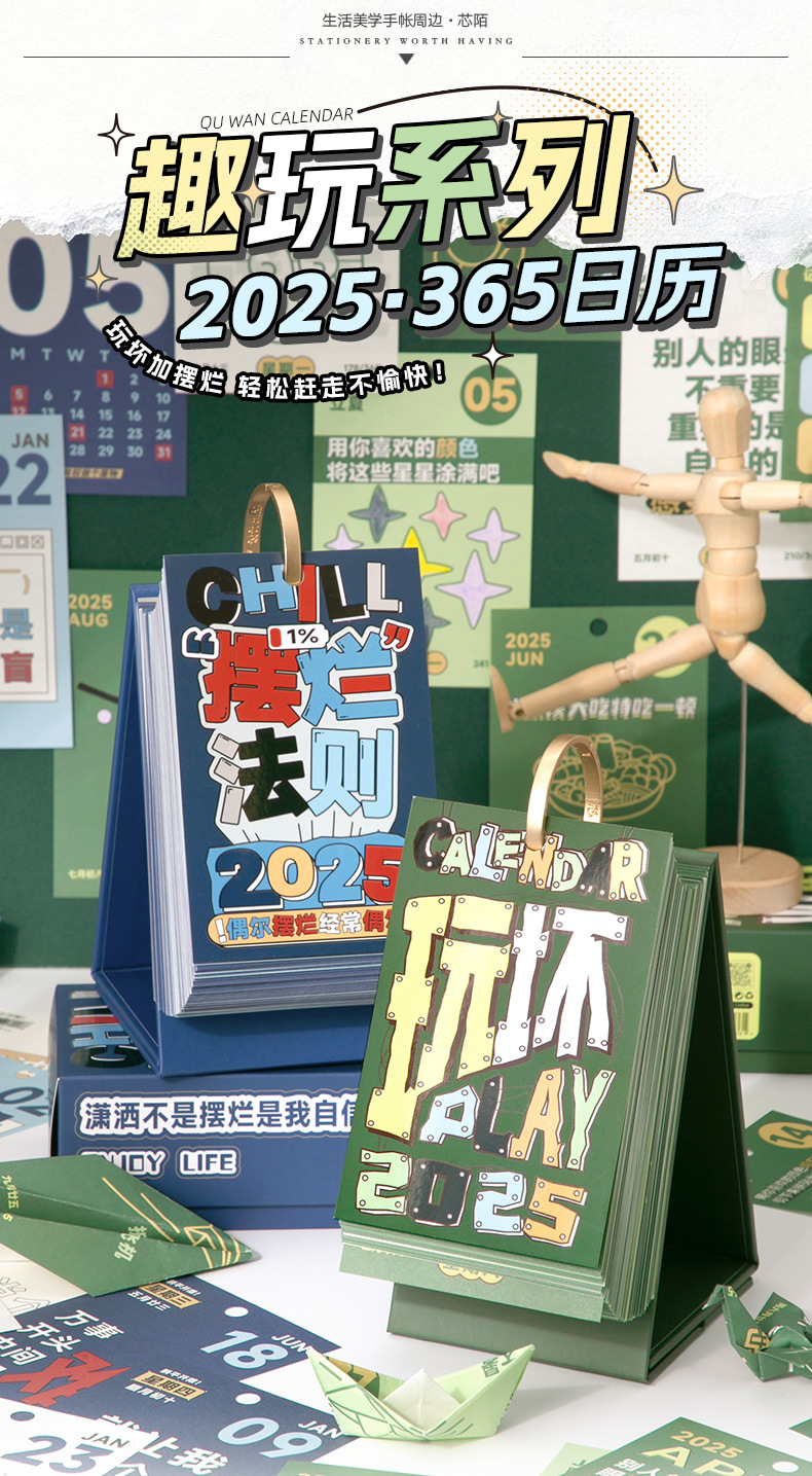芯陌 玩坏PLAY-2025年台历365天日历ins风趣味文字解压桌面摆件