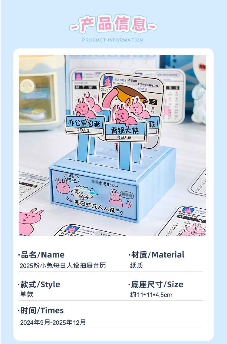 台历2025年粉色小兔人设日历抽屉台历创意桌面小摆件计划本月历本