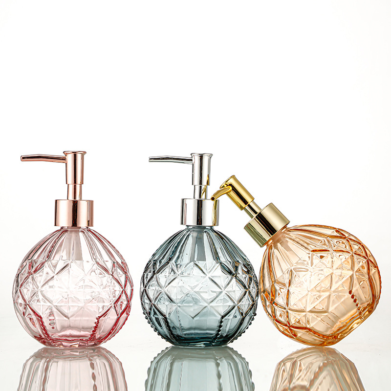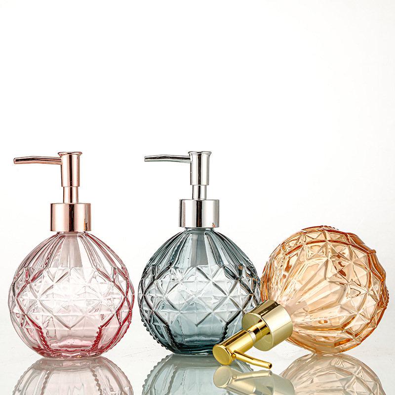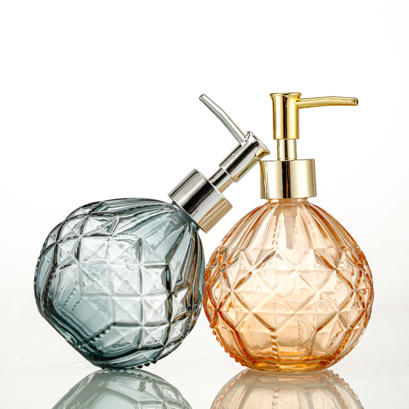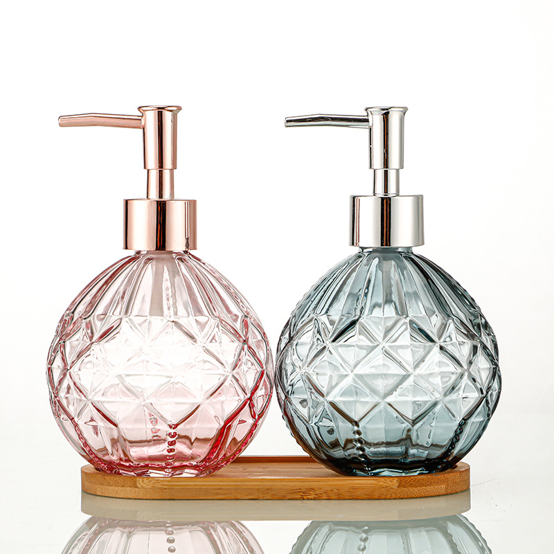 批发按压菱形球形洗手液瓶玻璃皂液分装卫浴用洗发沐浴露瓶