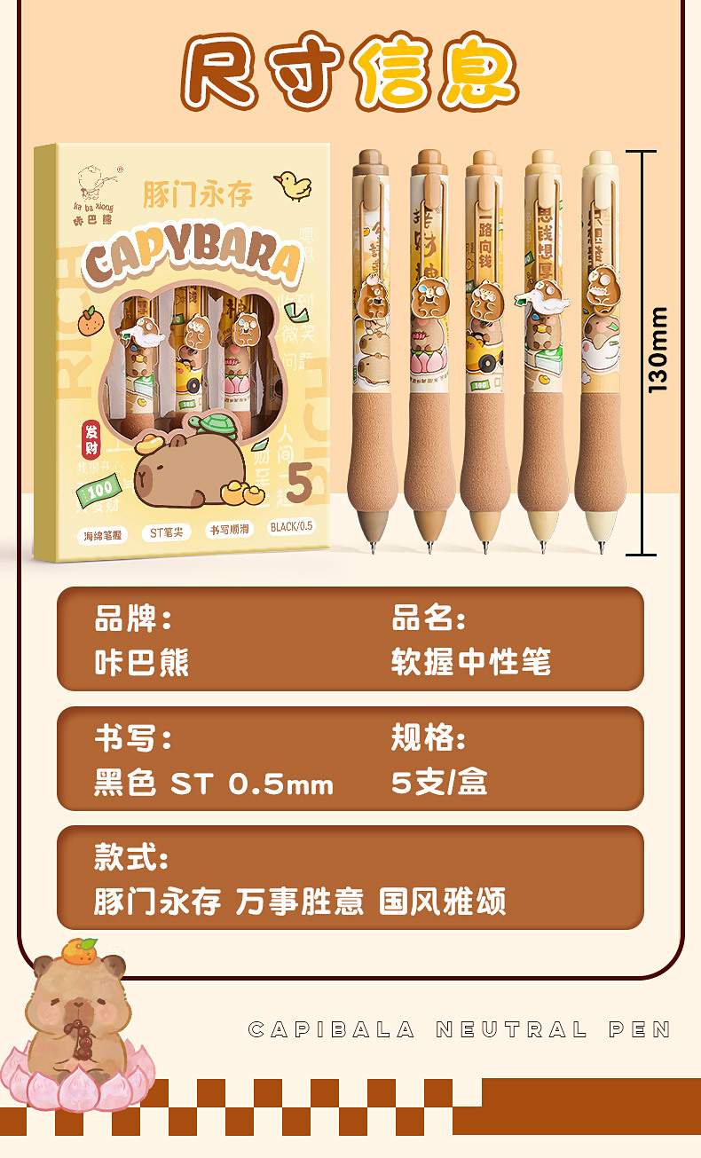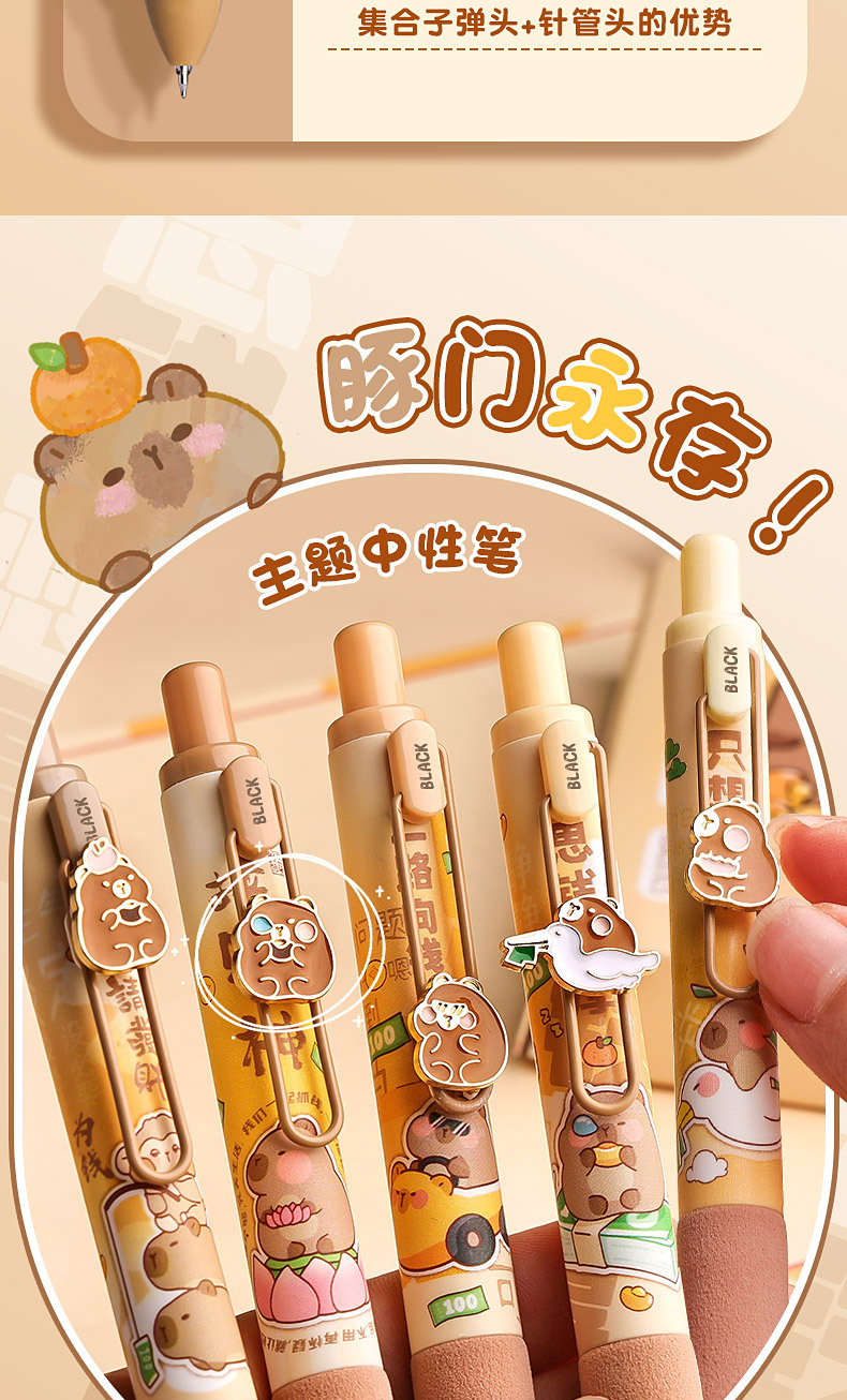 卡皮巴拉中性笔合金贴片黑笔中性笔按动式0.5速干水笔学生刷题笔