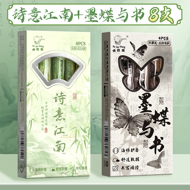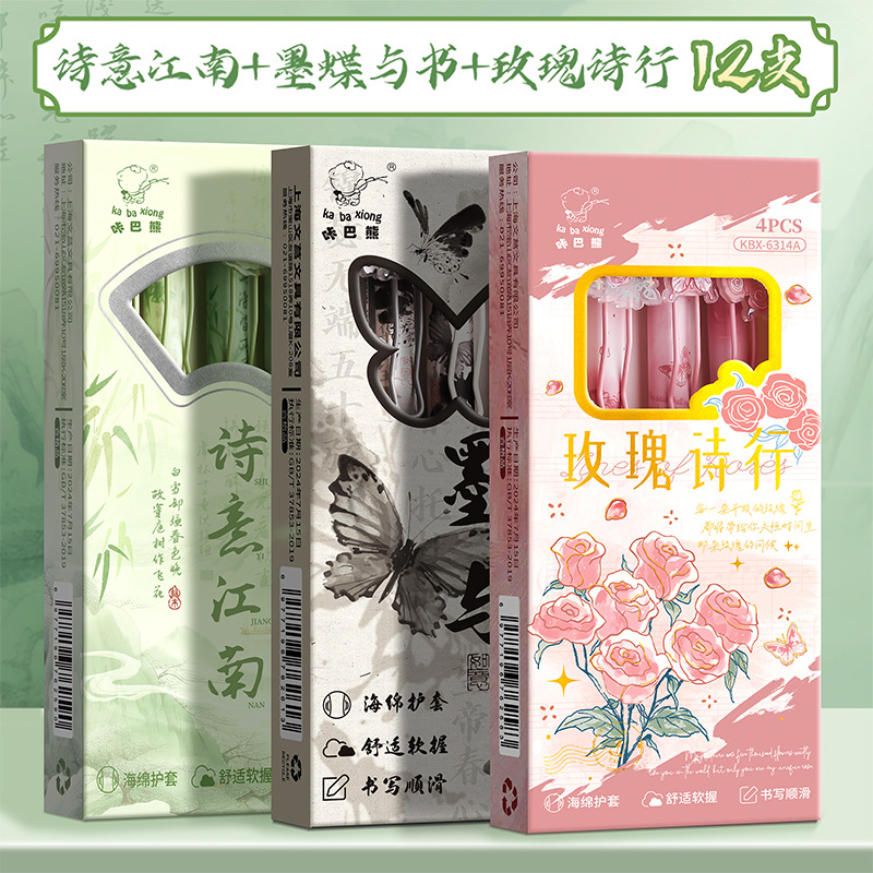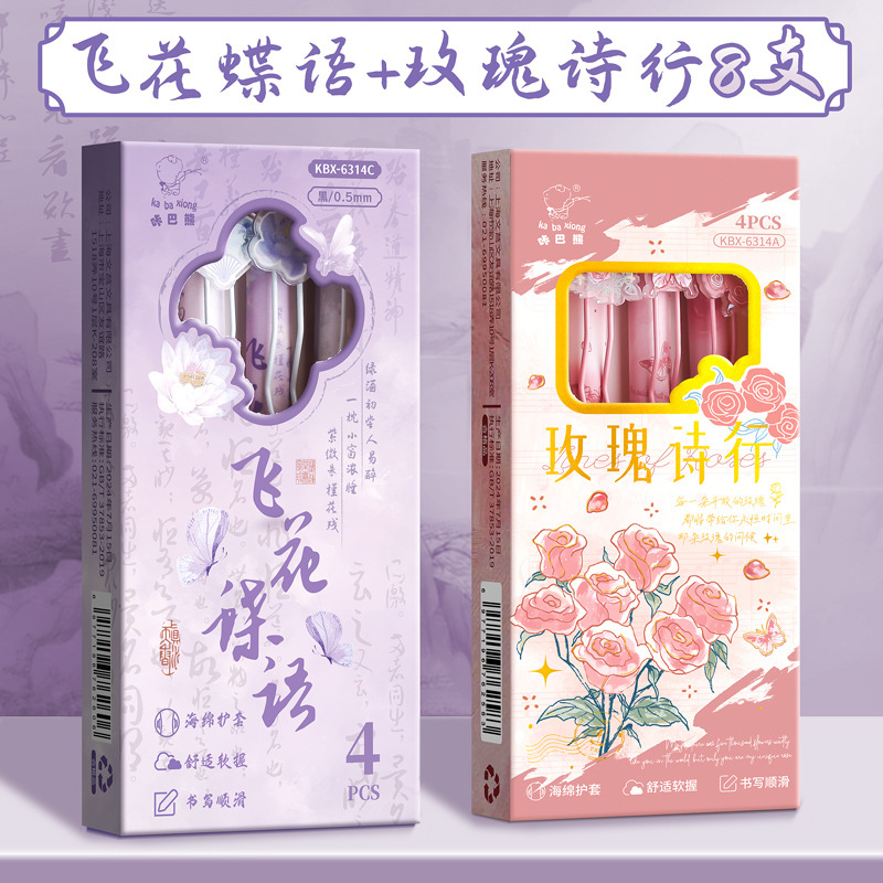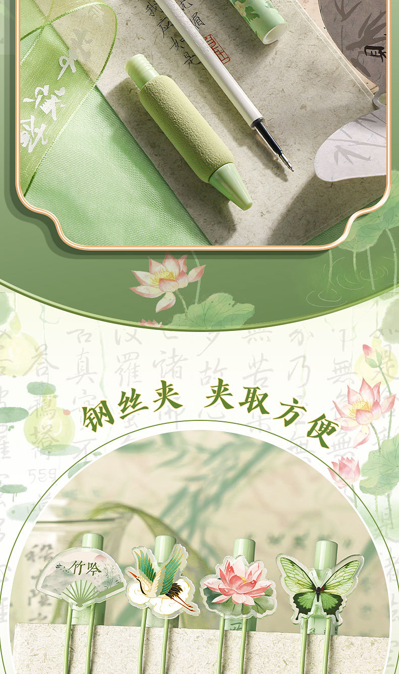 高颜值按动笔款国风系列款中性笔超软握笔处st笔尖亚克力高清贴片