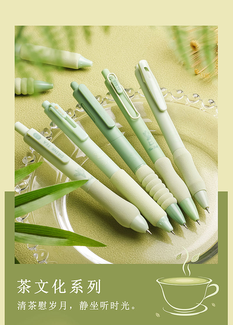 高颜值速干按动中性笔ST笔头刷题笔学生考试专用笔软欧包圆珠笔