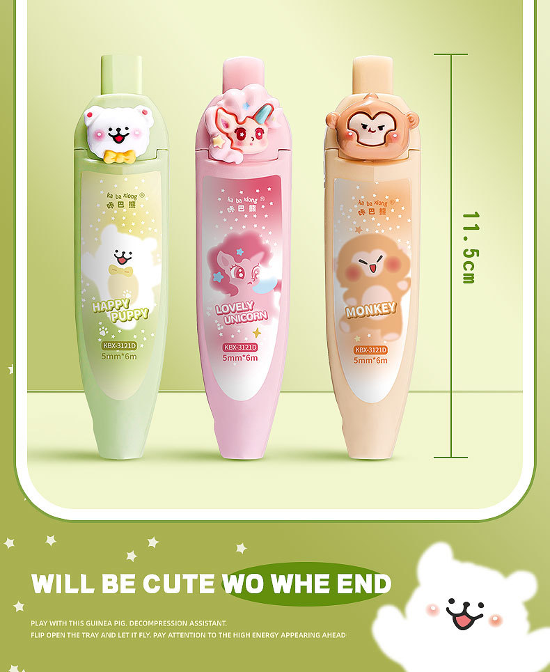 咔巴熊高颜值卡通按动出芯款修正带可换替芯加大可爱贴片多款可选