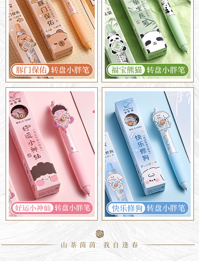 咔巴熊卡通款小胖笔超软护套按动款st笔头速干油墨带精美立体贴片