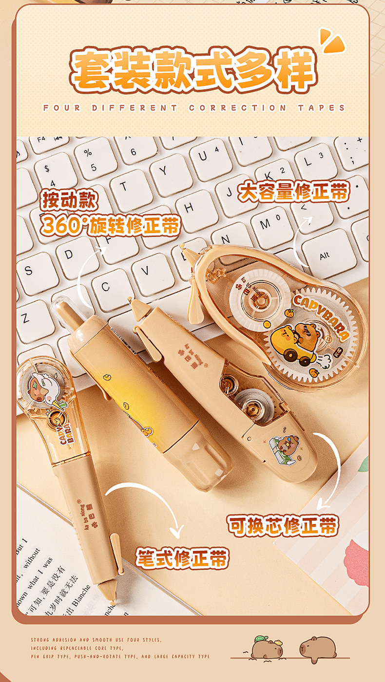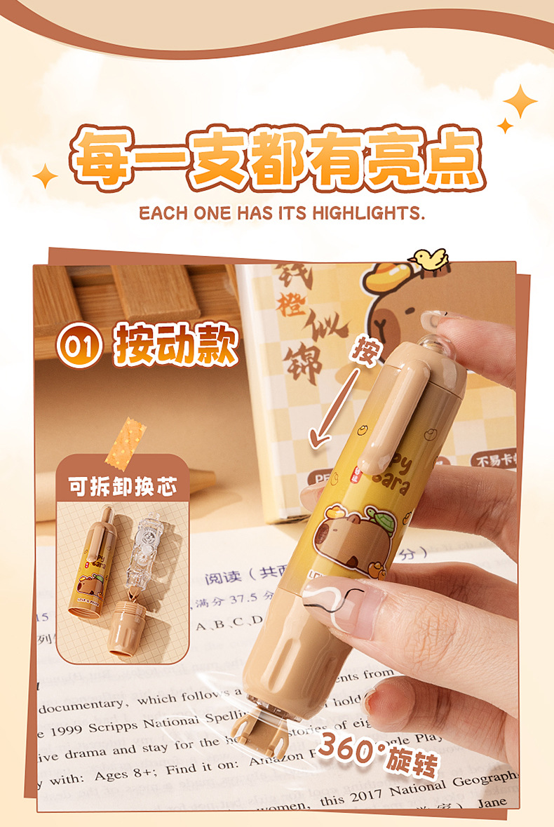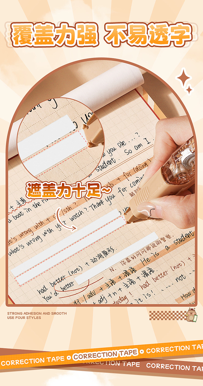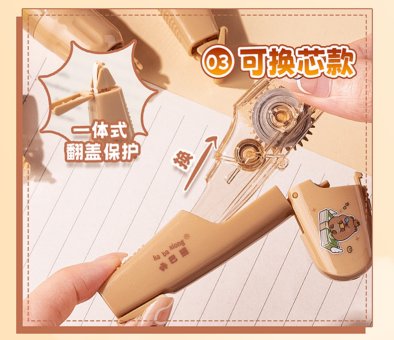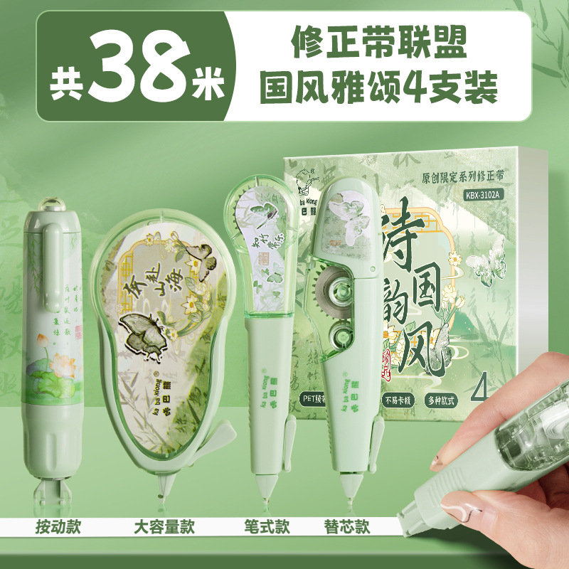 国风雅颂修正带大容量学生专用涂改带高颜值翻盖保护按动可拆卸式