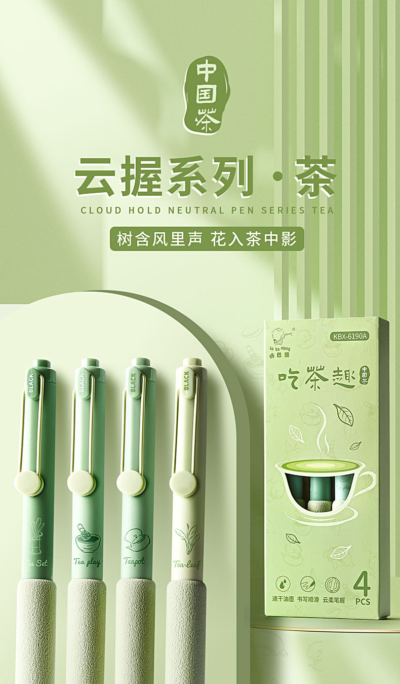 按动中性笔ST头高颜值吃茶趣顺滑速干刷题笔学生专用超软欧包笔杆