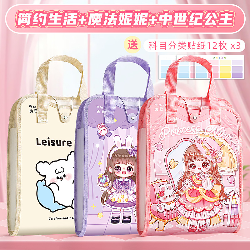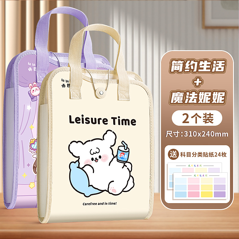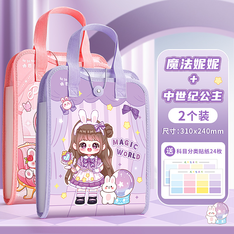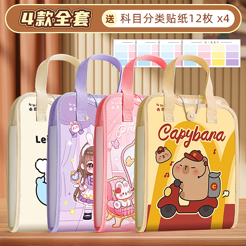 卡通竖式手提风琴包分收纳试卷文件袋透明插页大容量收纳包多功能