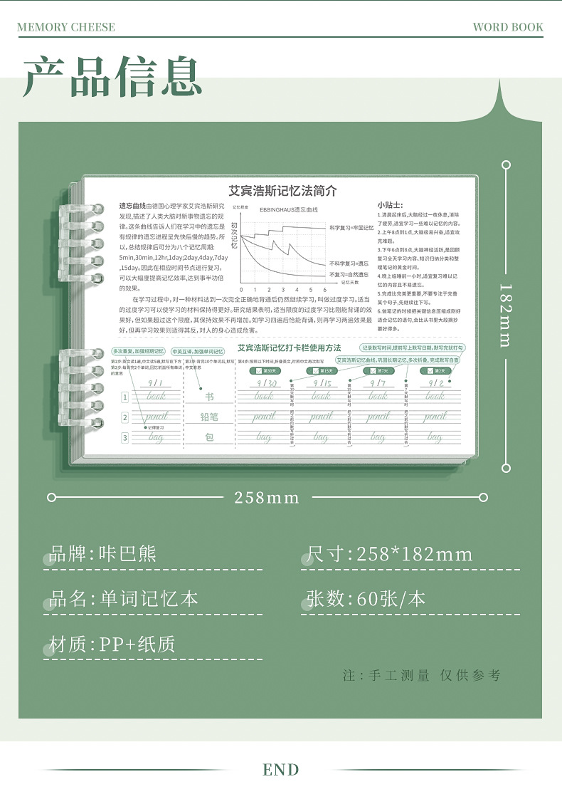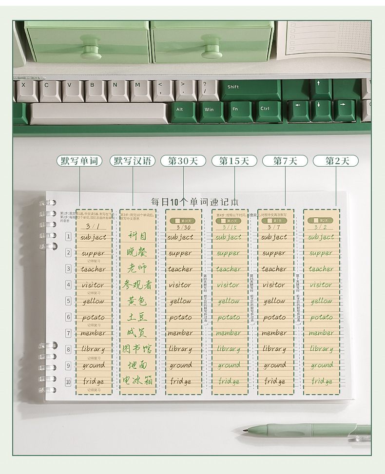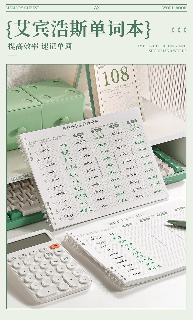 艾宾浩斯英语单词记忆本遗忘记忆曲线默写本考研背单词复习计划表