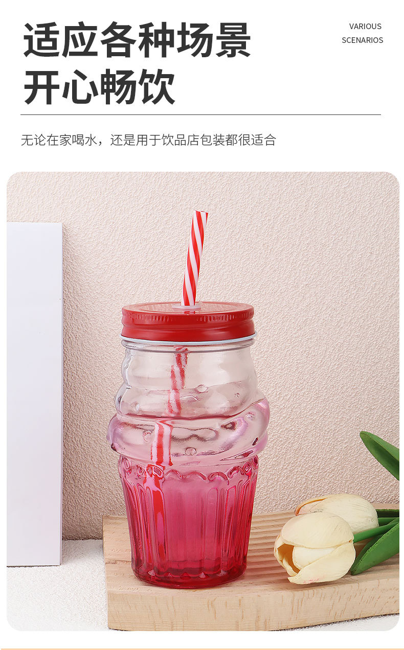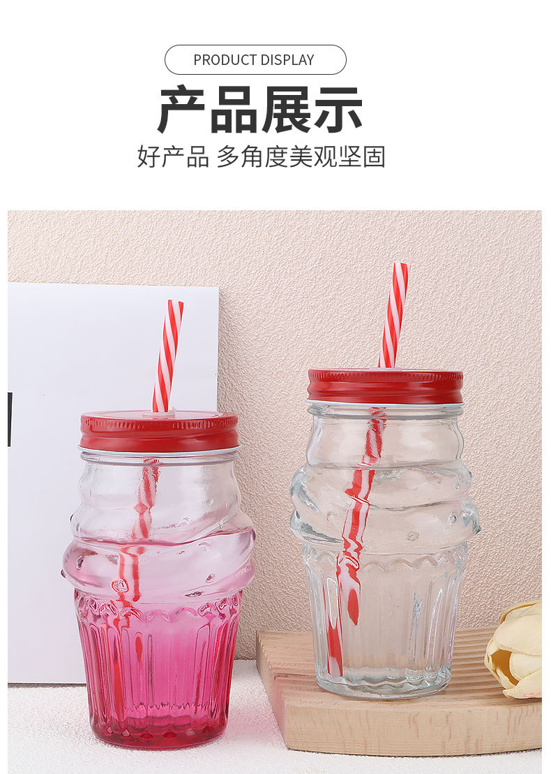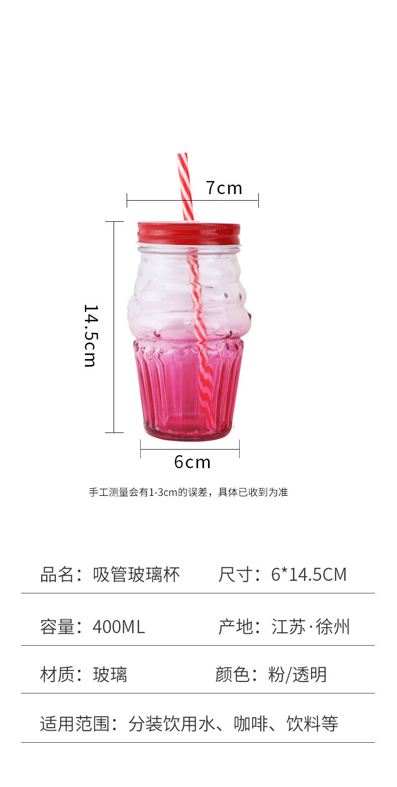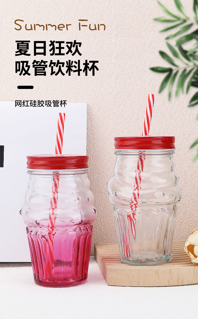 新款外带奶茶玻璃瓶批发亚马逊卡通网红带吸管梅森瓶果汁咖啡瓶