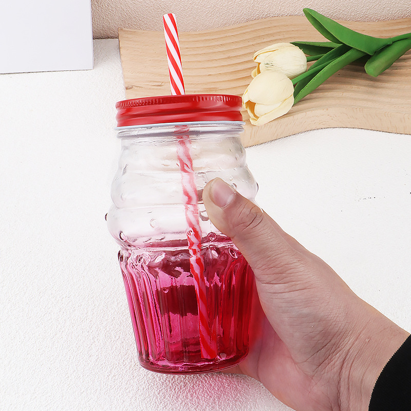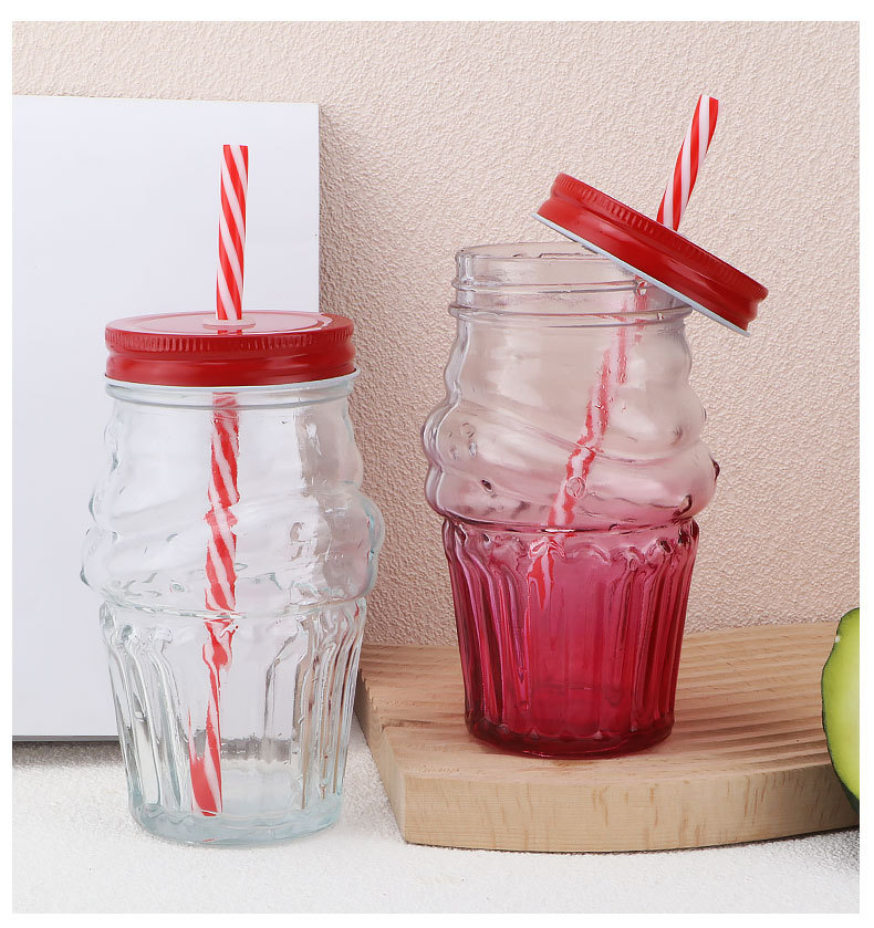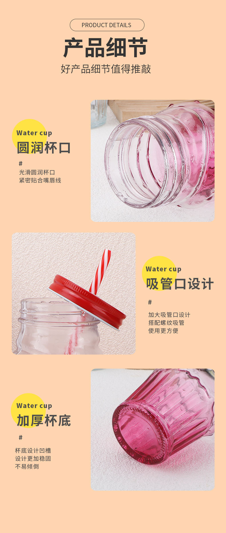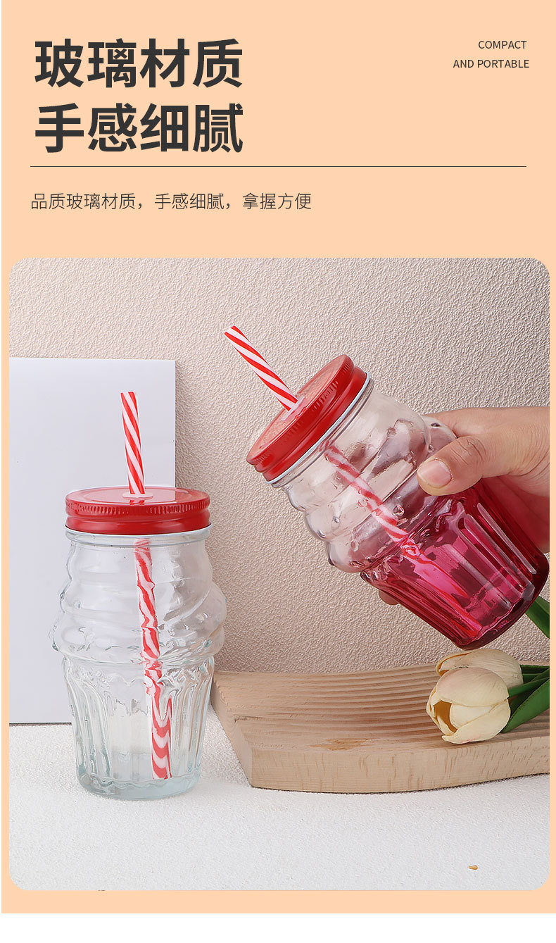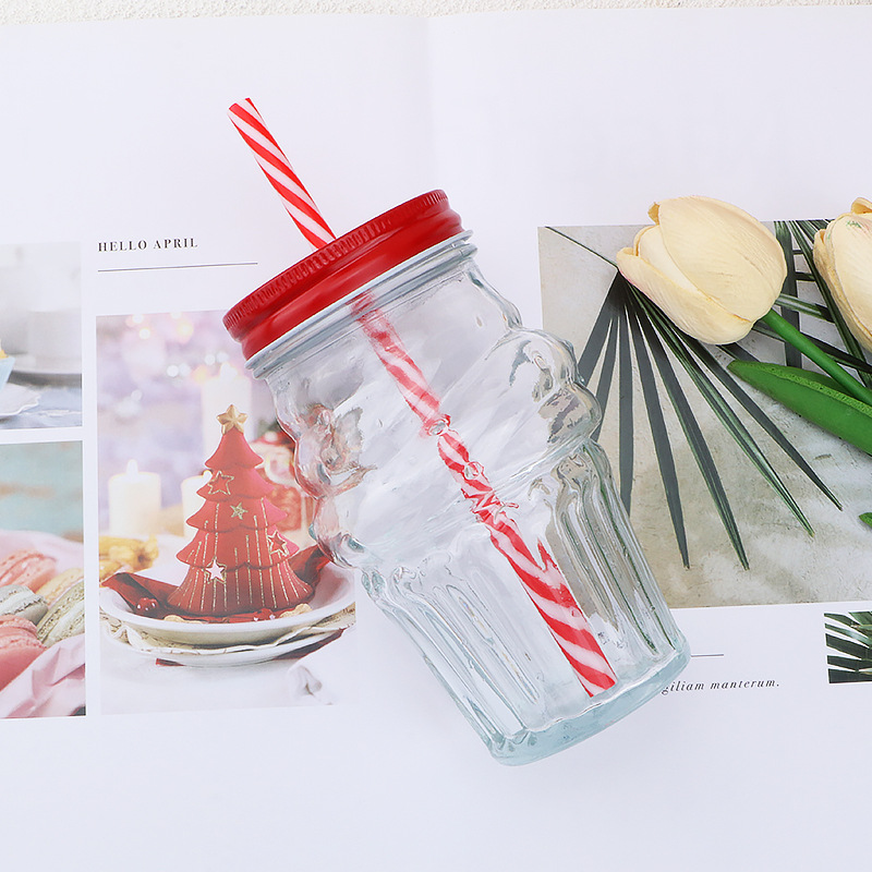 新款外带奶茶玻璃瓶批发亚马逊卡通网红带吸管梅森瓶果汁咖啡瓶