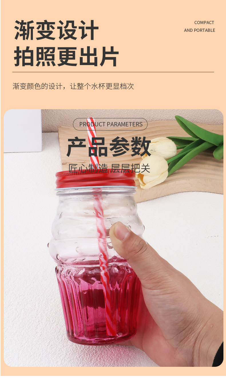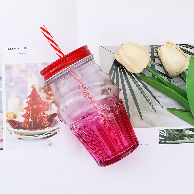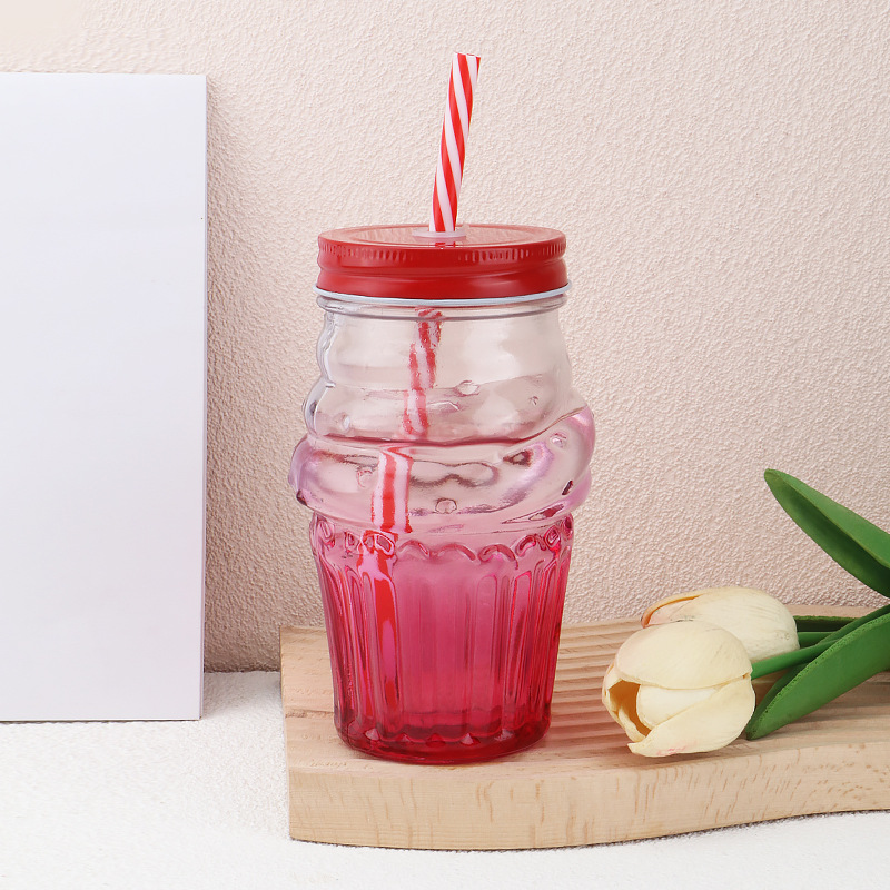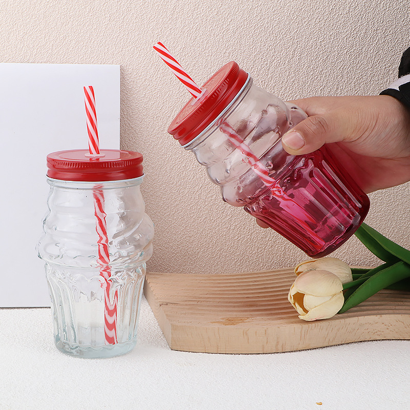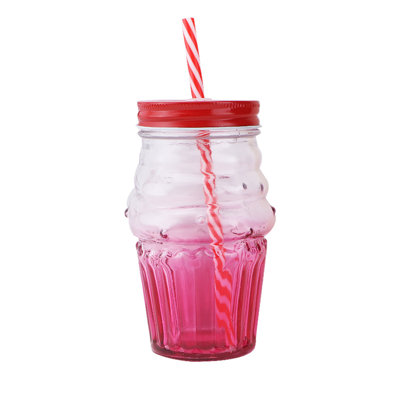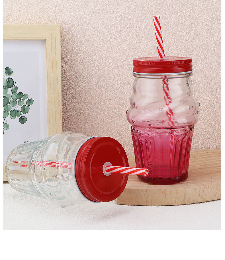 新款外带奶茶玻璃瓶批发亚马逊卡通网红带吸管梅森瓶果汁咖啡瓶