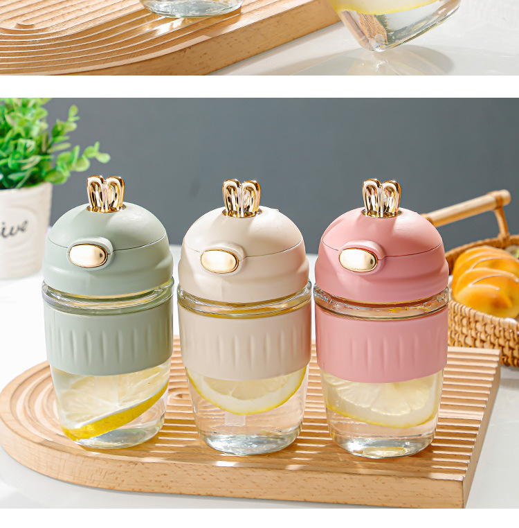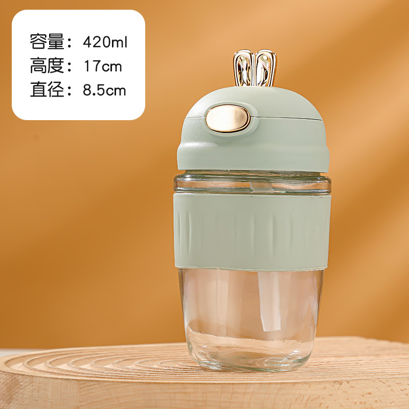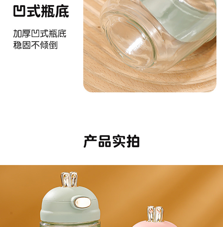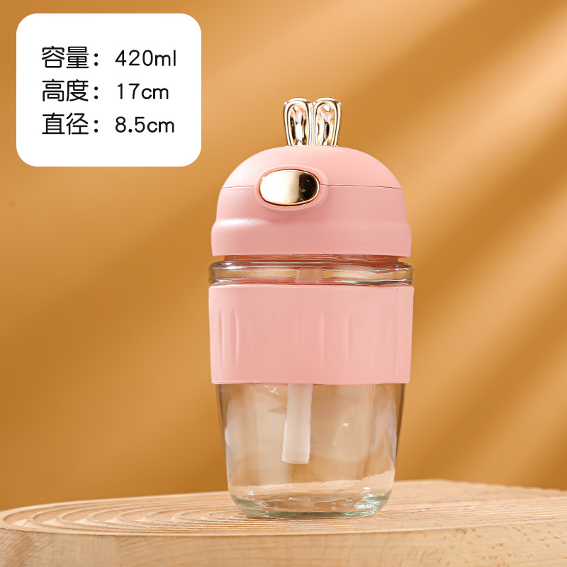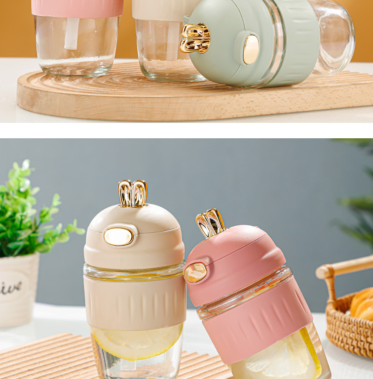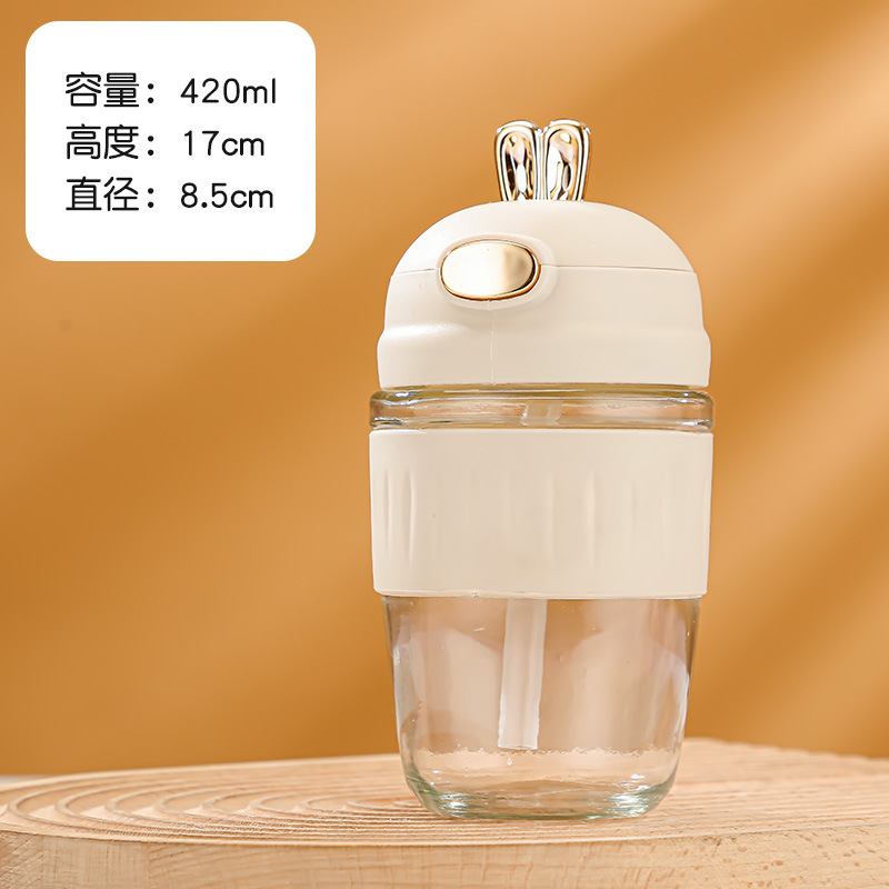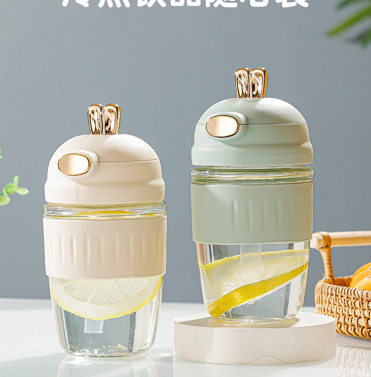 萌兔吸管杯玻璃高颜值防烫隔热大容量翻盖ins咖啡杯儿童便携水杯