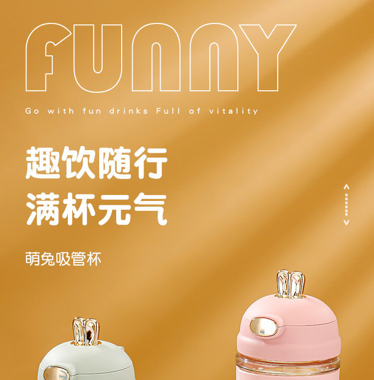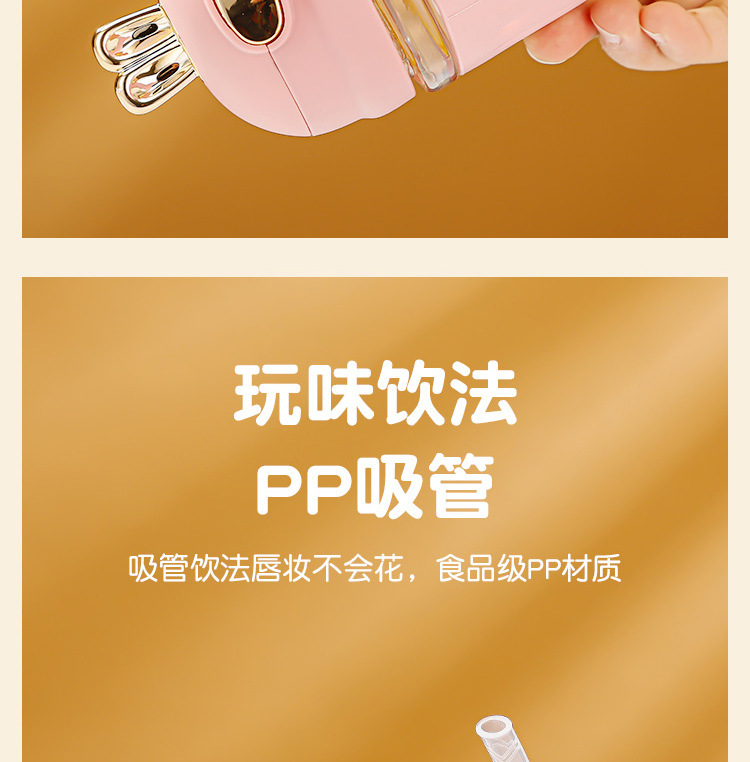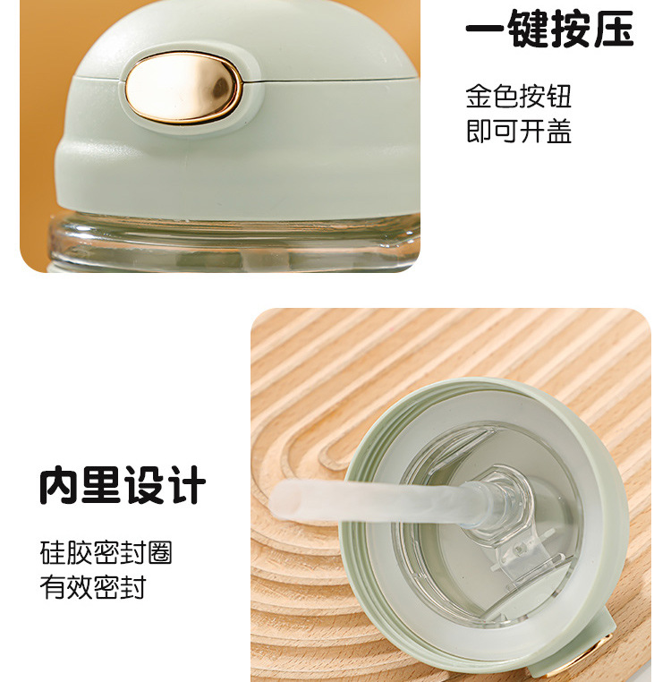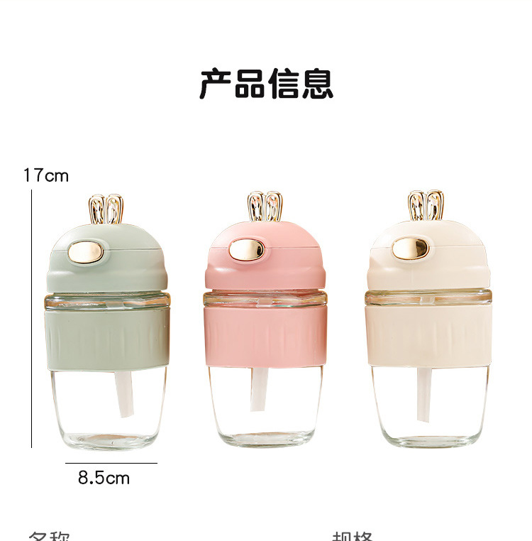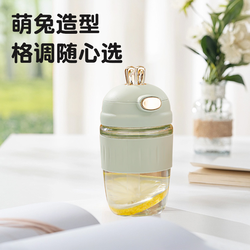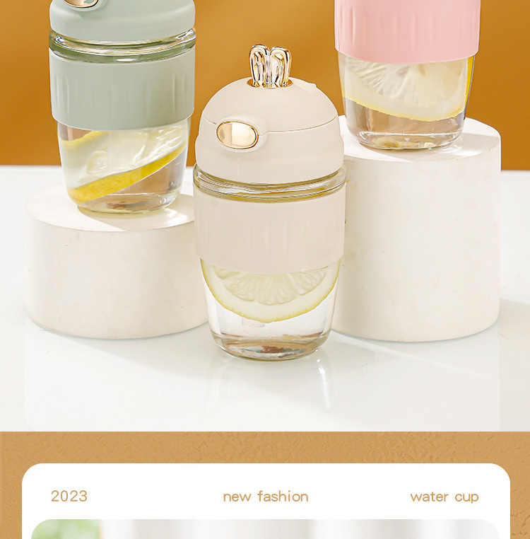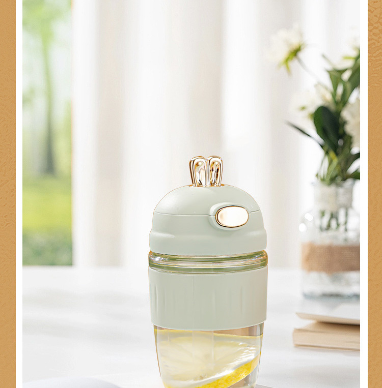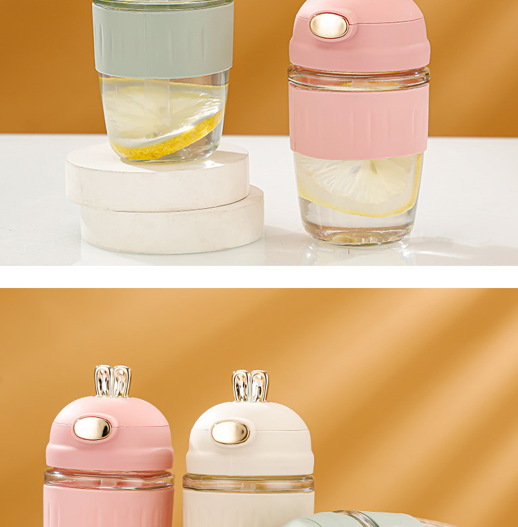萌兔吸管杯玻璃高颜值防烫隔热大容量翻盖ins咖啡杯儿童便携水杯
