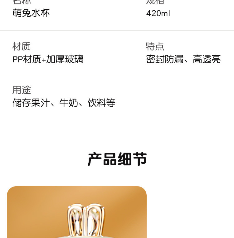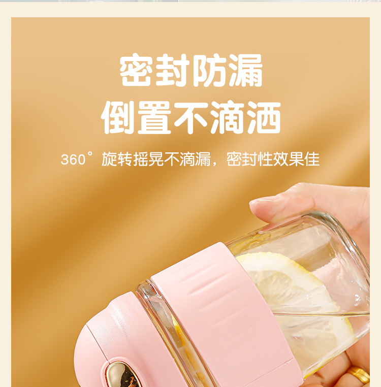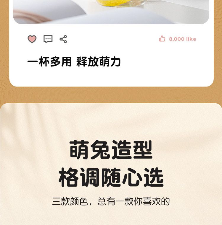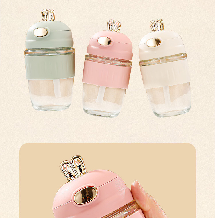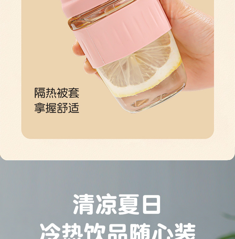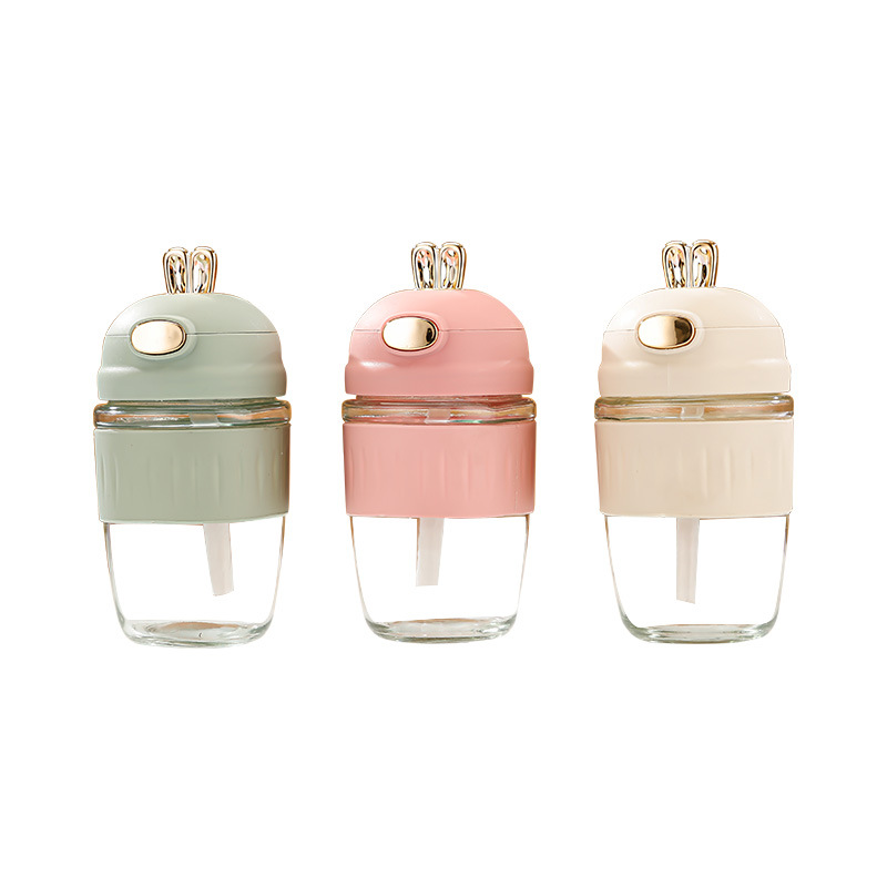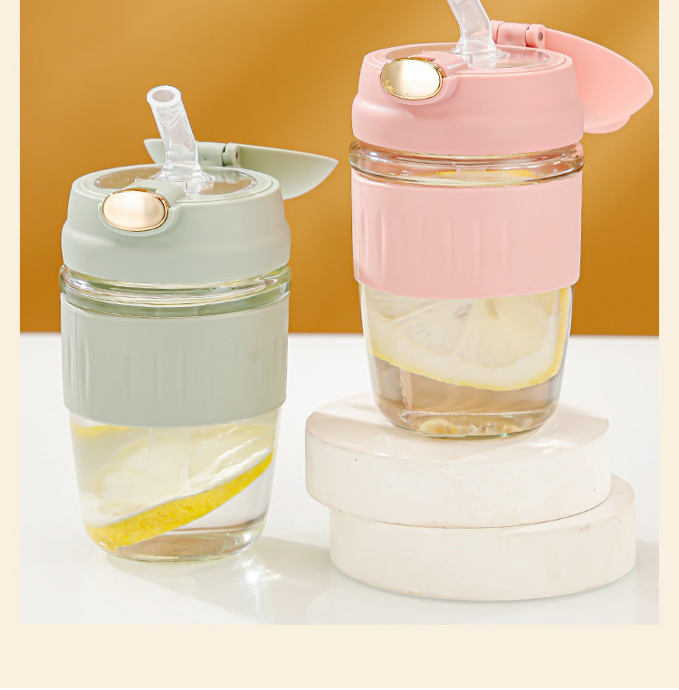 萌兔吸管杯玻璃高颜值防烫隔热大容量翻盖ins咖啡杯儿童便携水杯