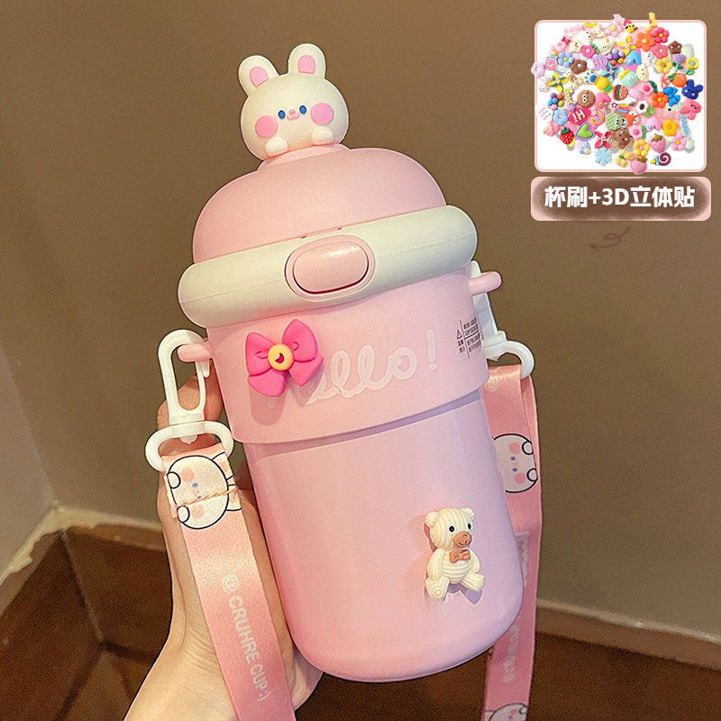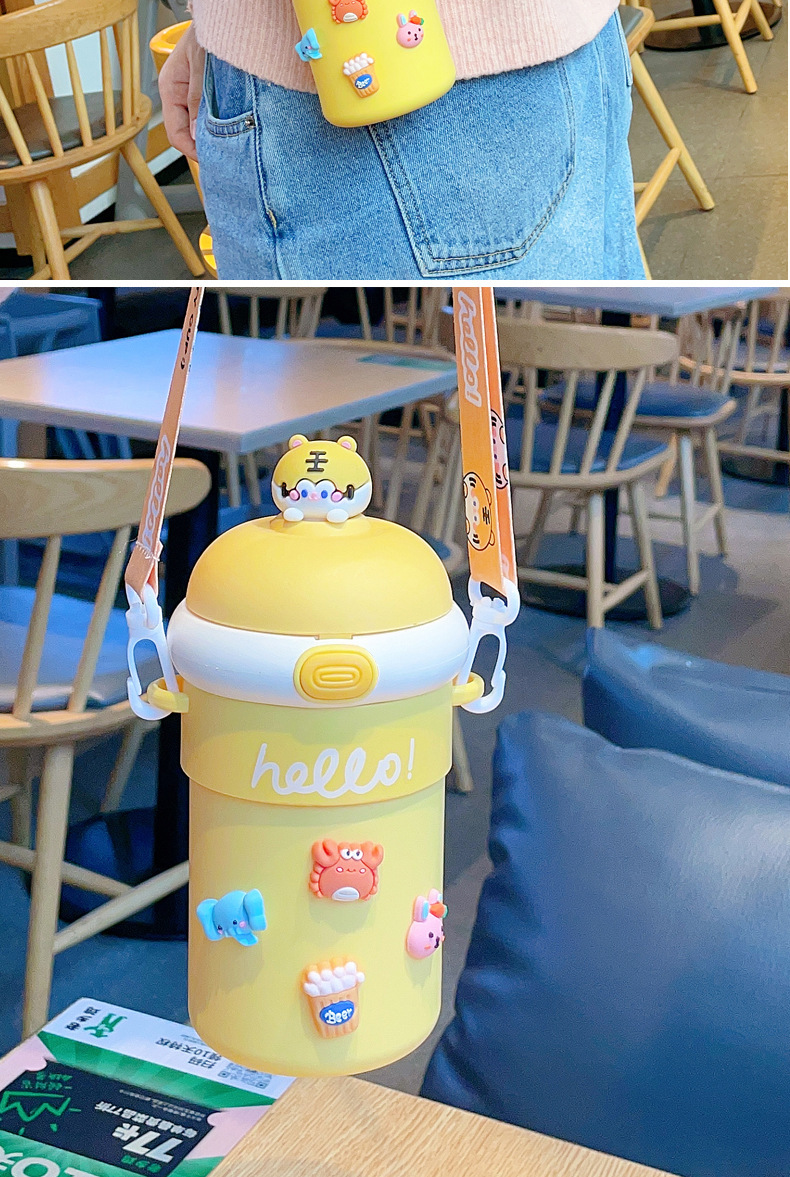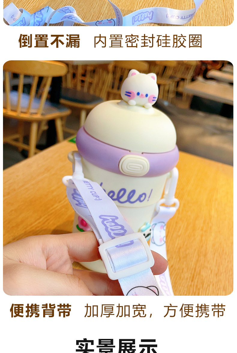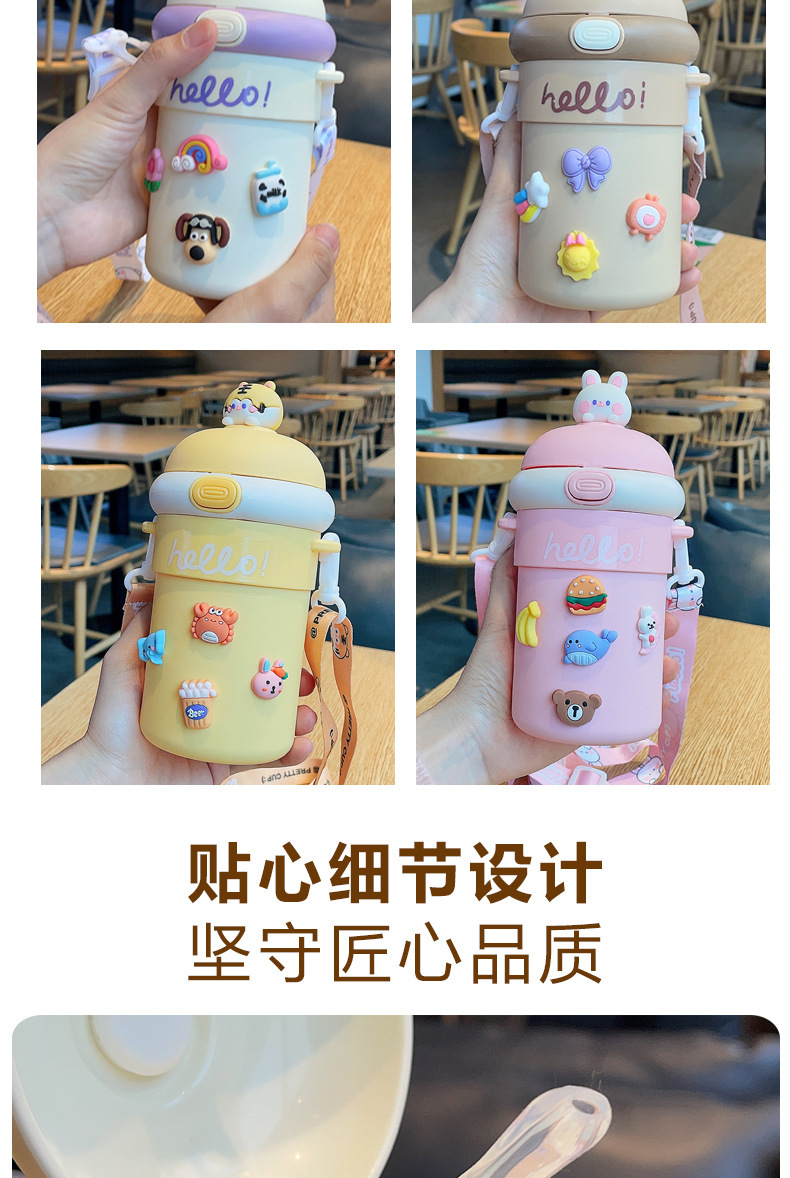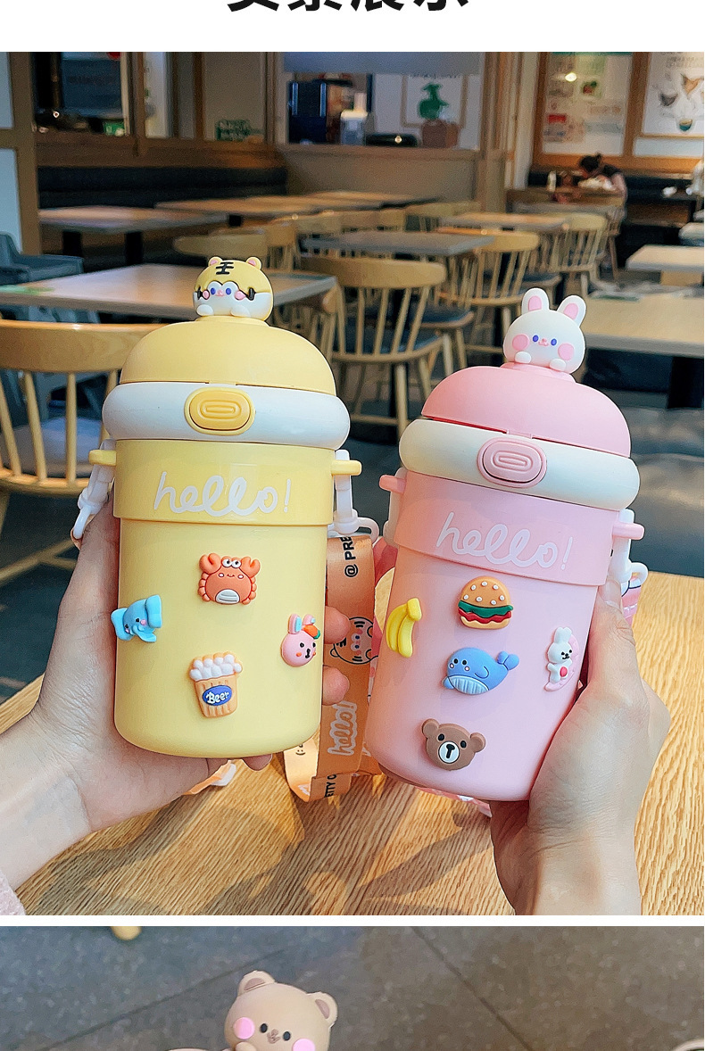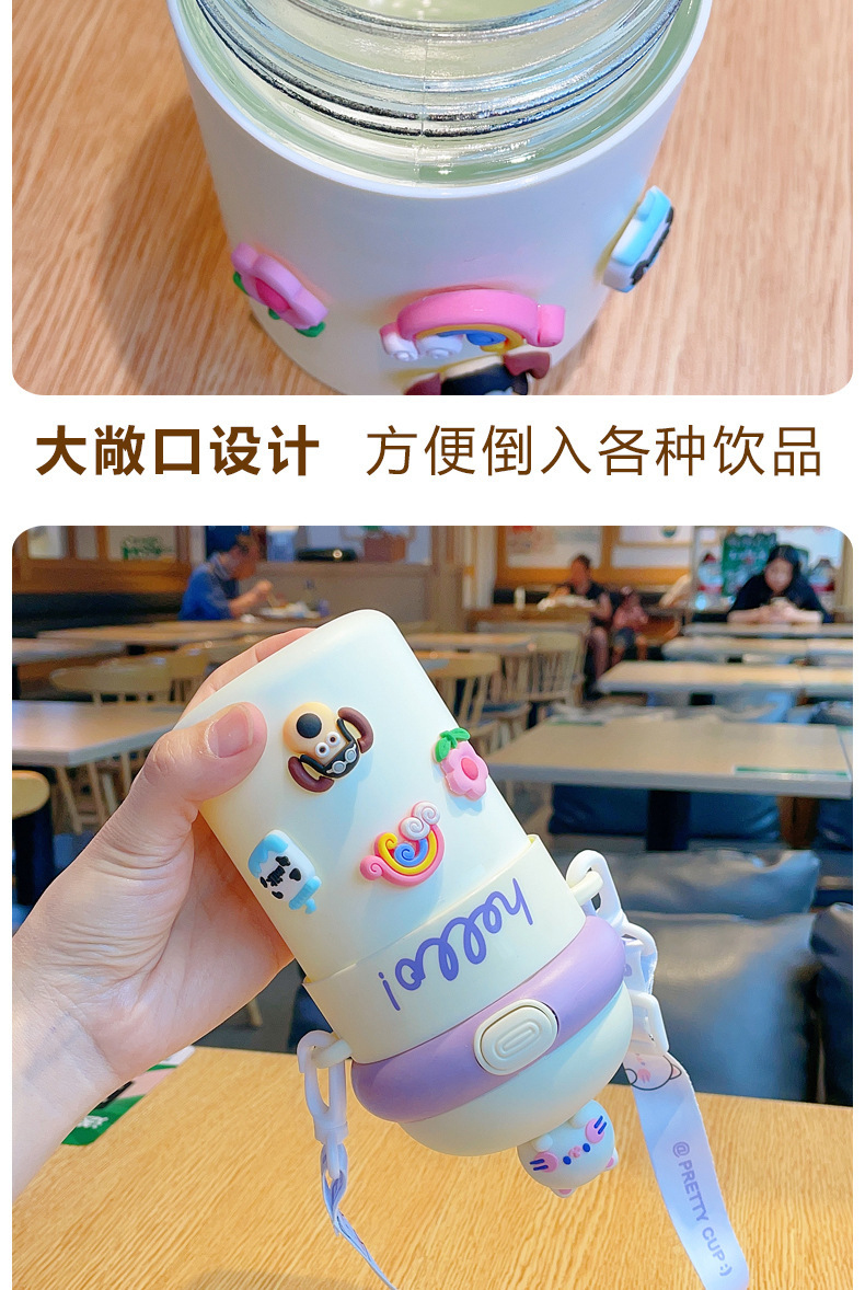 便携学生斜挎超萌杯子可爱吸管弹跳杯玻璃内胆 ins女生高颜值水杯