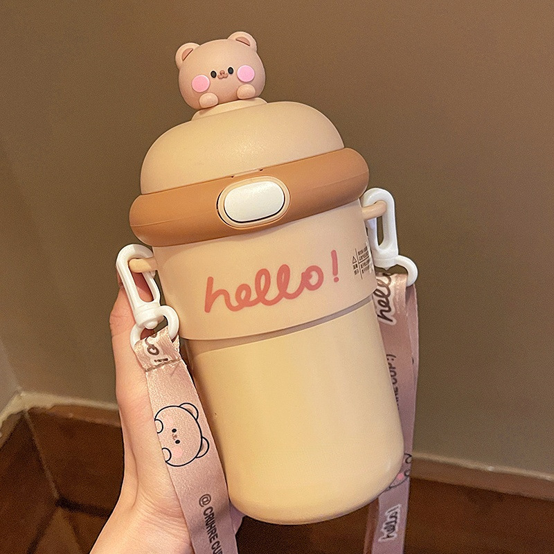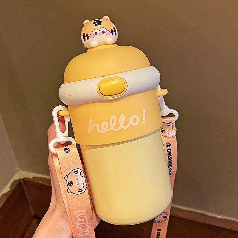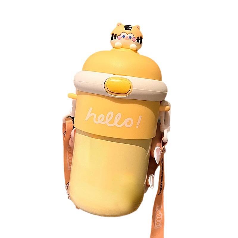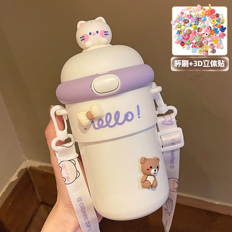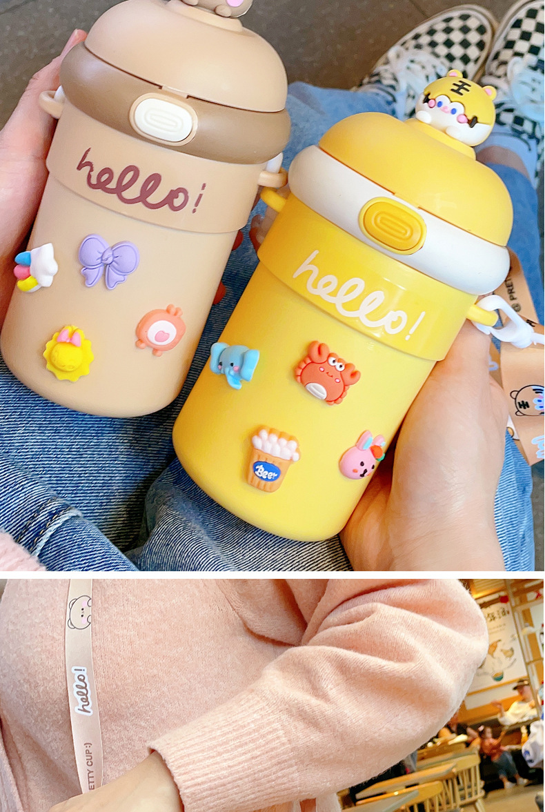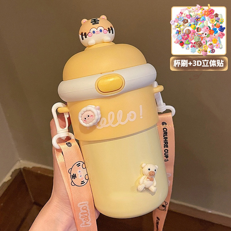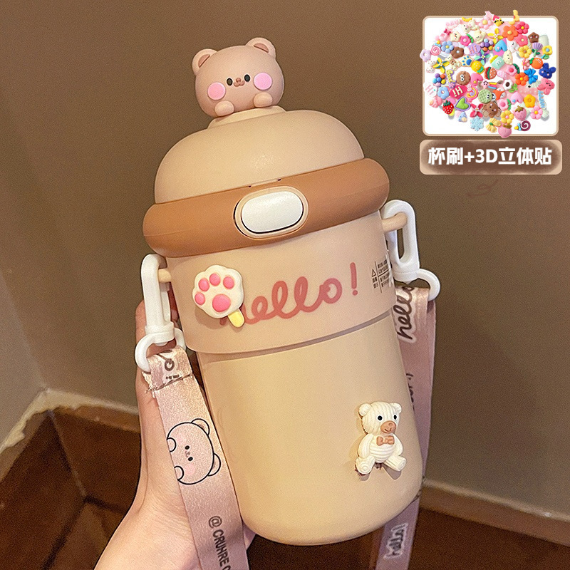 便携学生斜挎超萌杯子可爱吸管弹跳杯玻璃内胆 ins女生高颜值水杯