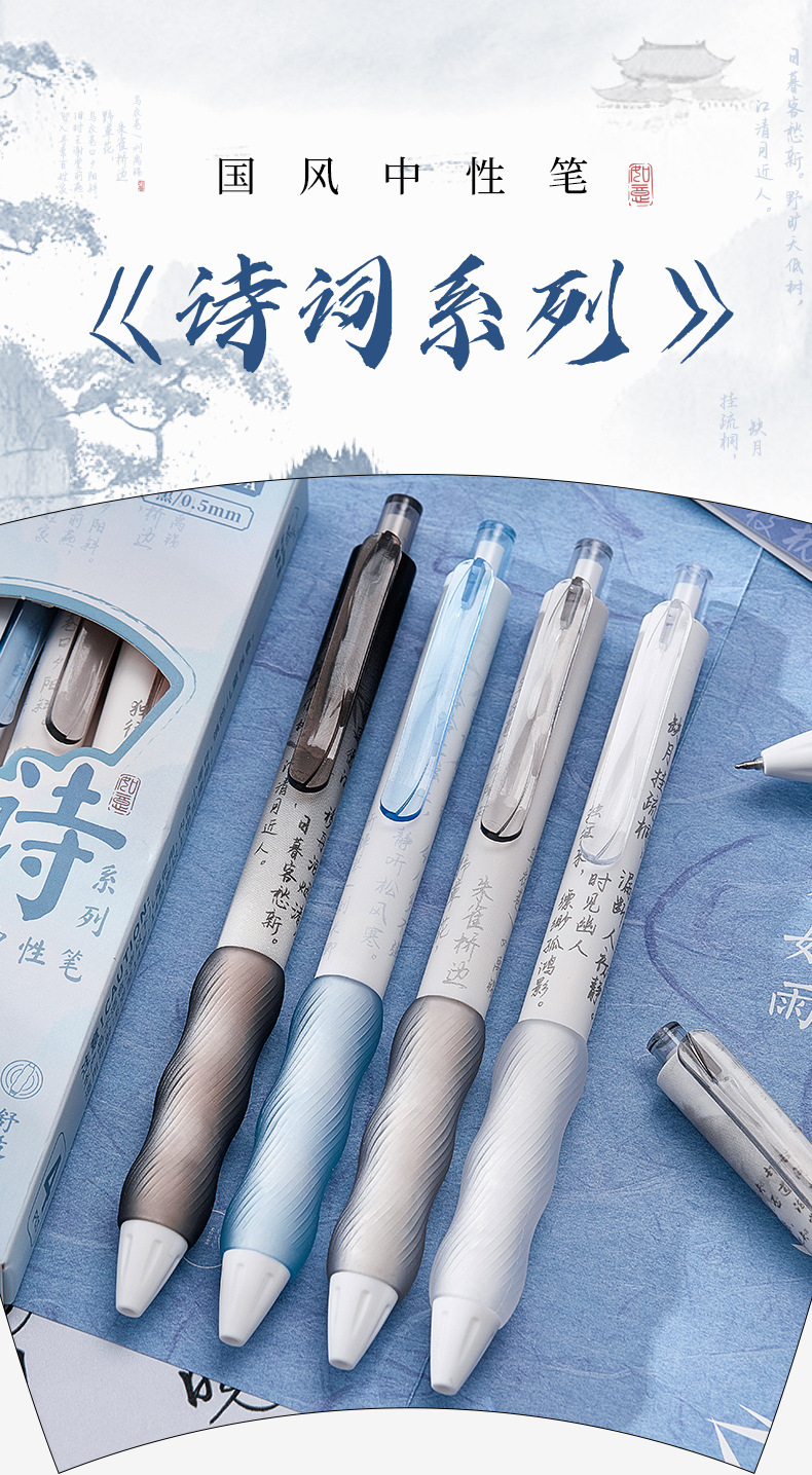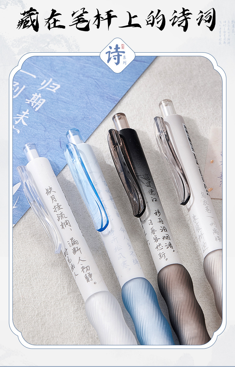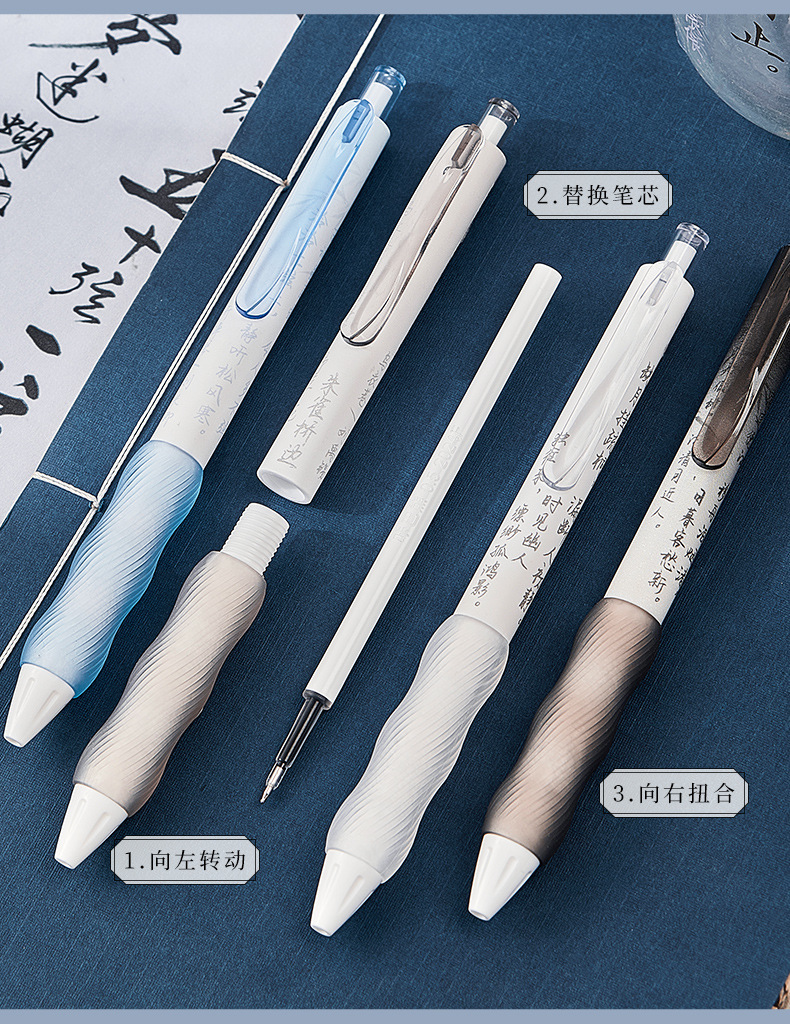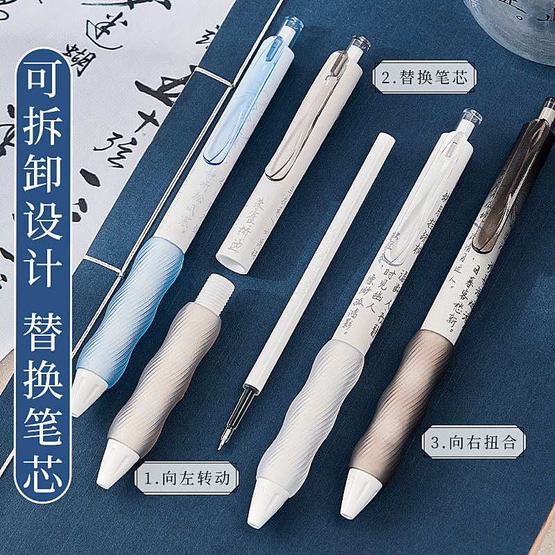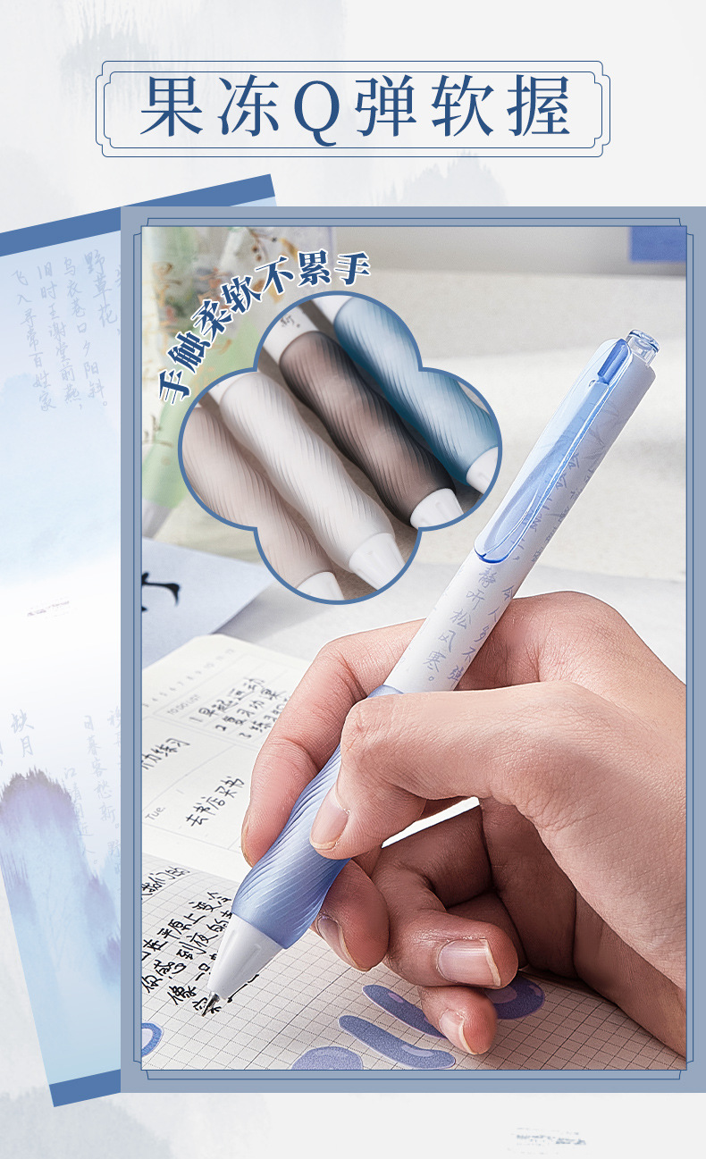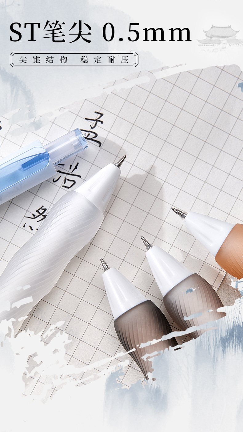 高颜值国风系列按动款设计中性笔st笔尖0.5mm黑色速干果冻Q弹软握