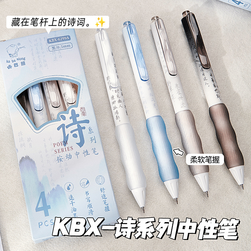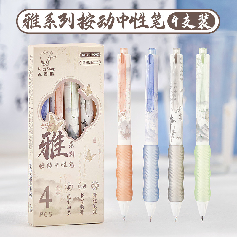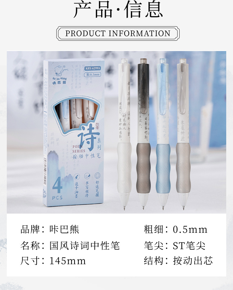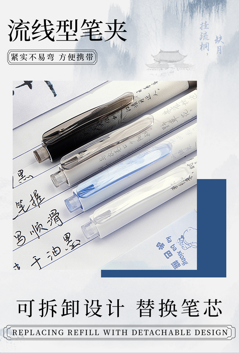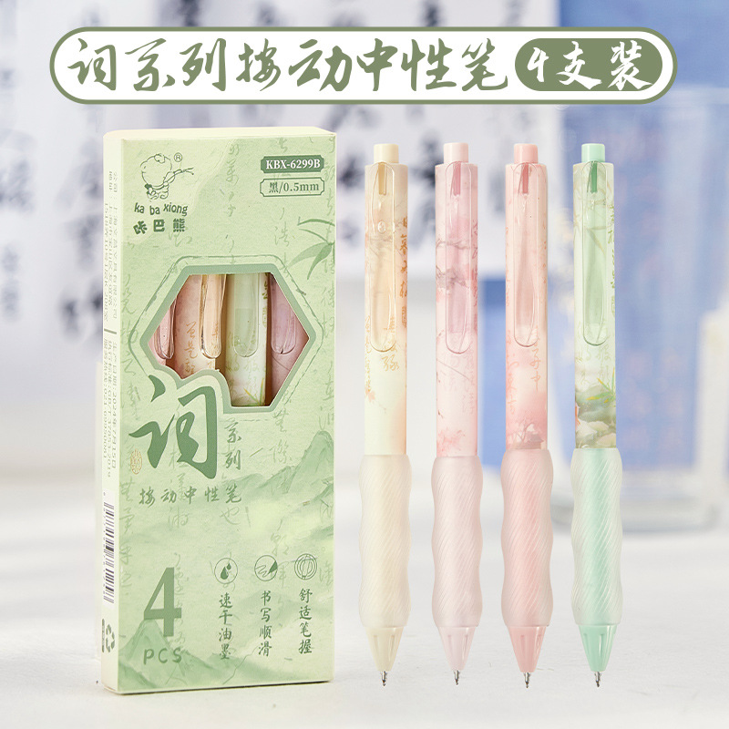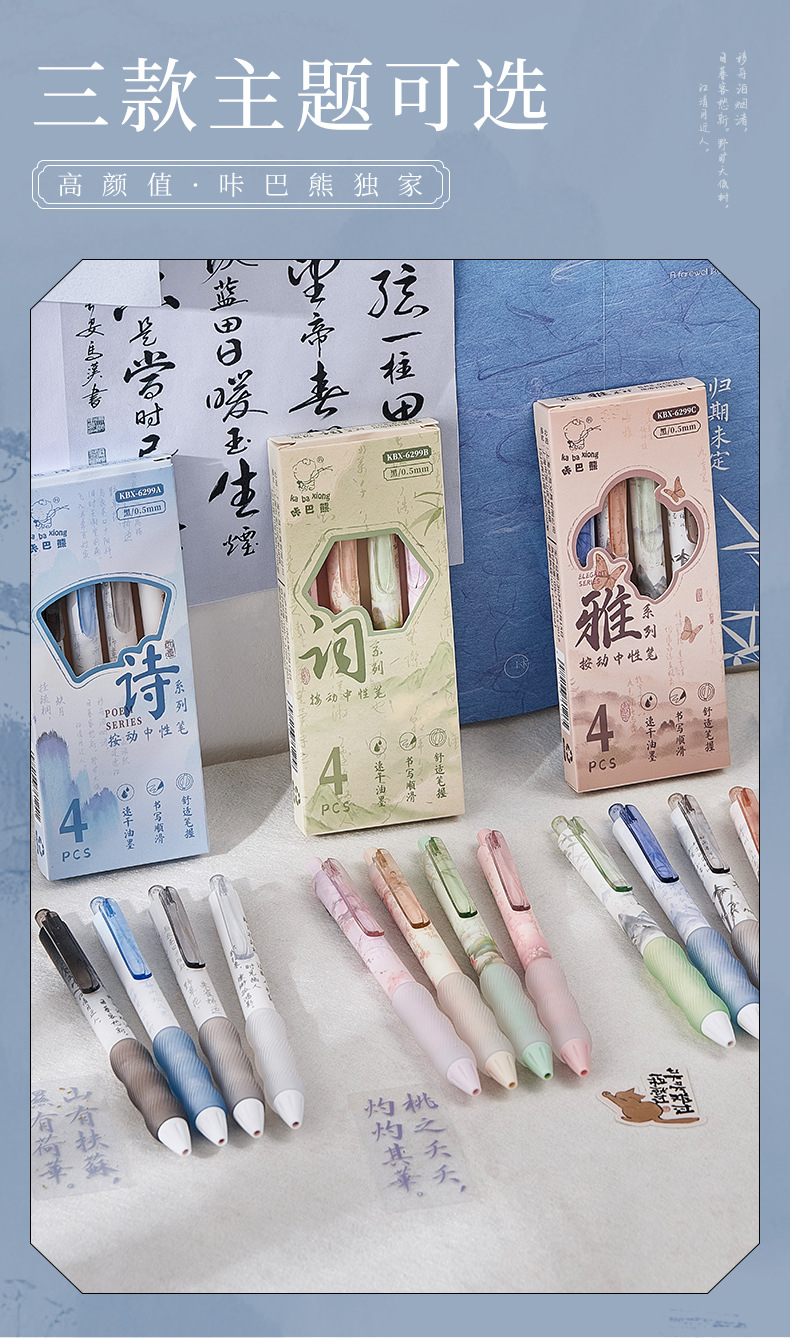高颜值国风系列按动款设计中性笔st笔尖0.5mm黑色速干果冻Q弹软握