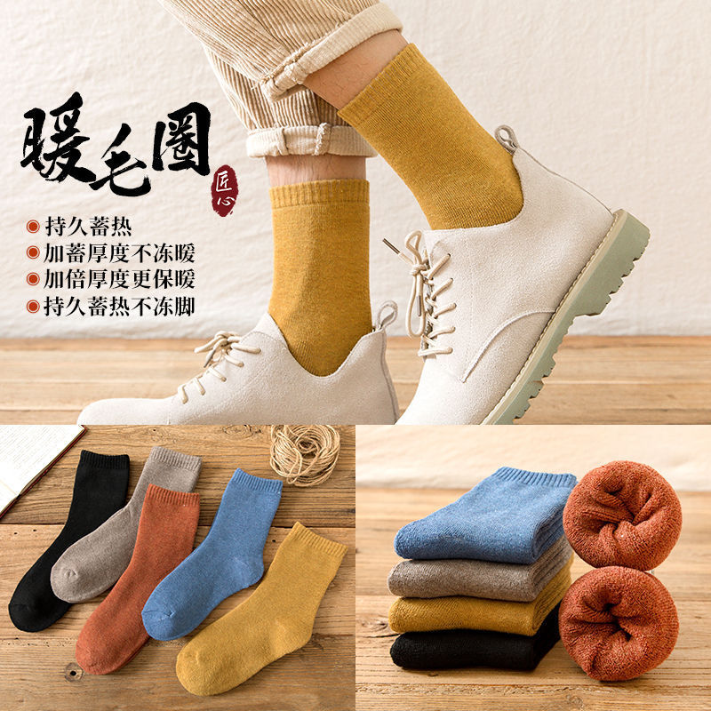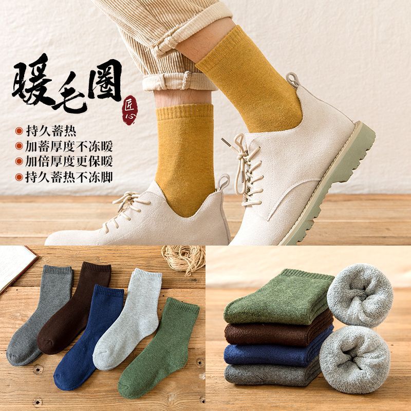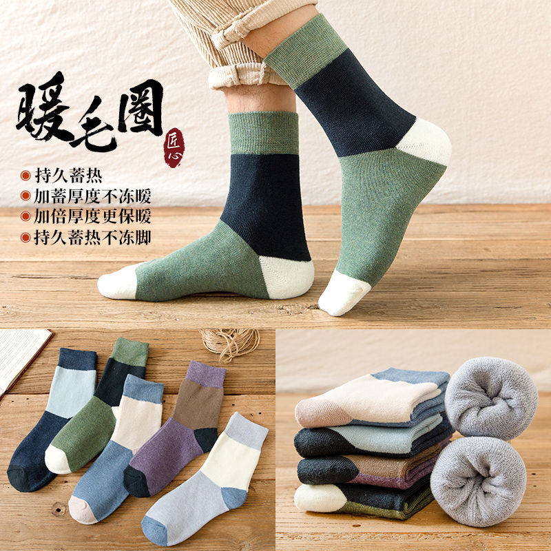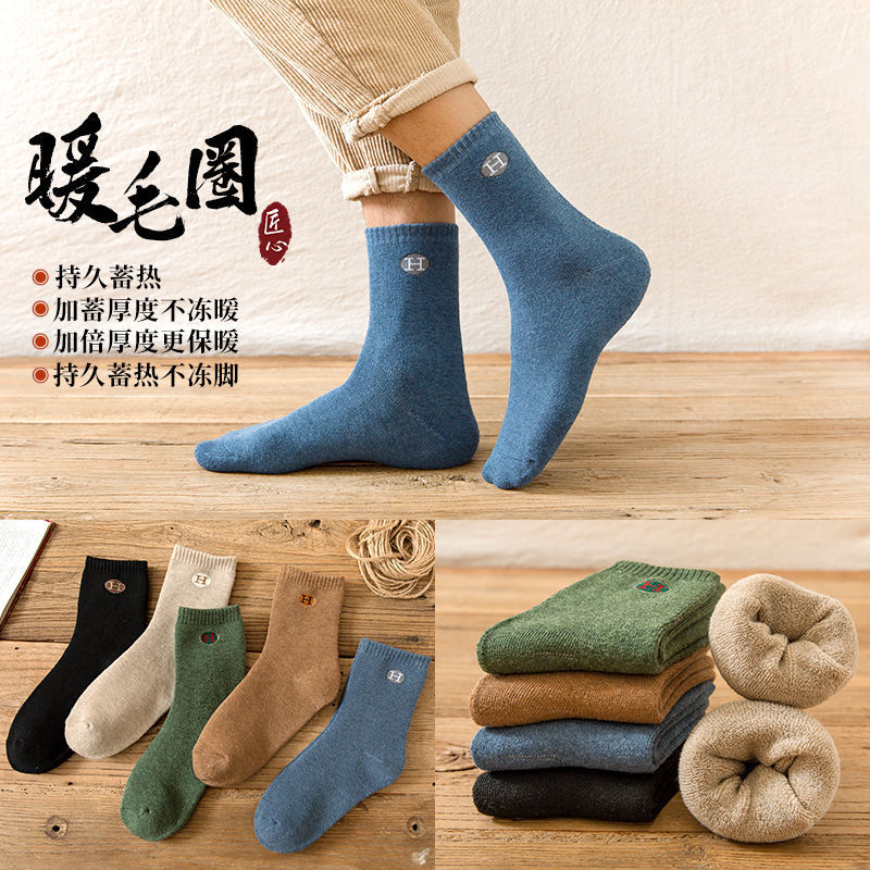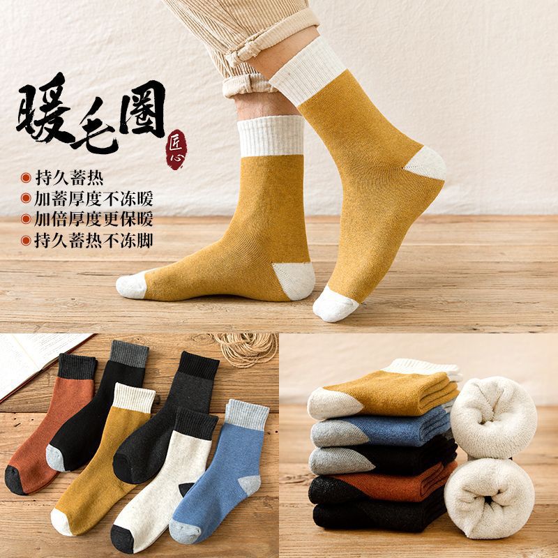 毛圈袜子男士中筒袜冬季包脚踝长袜黑白色运动袜毛巾底长筒袜批发