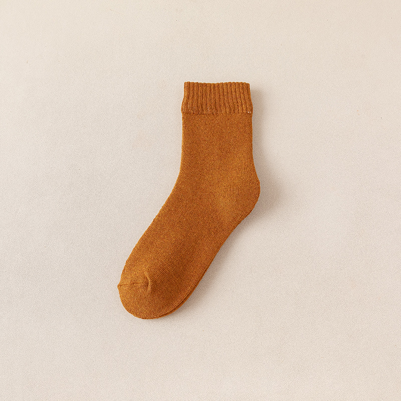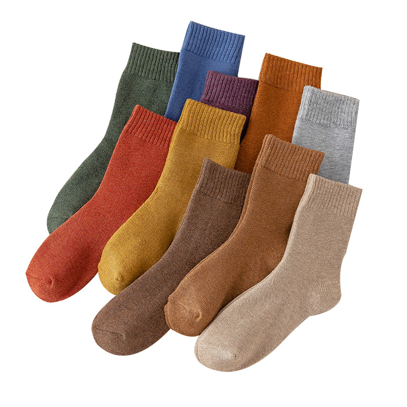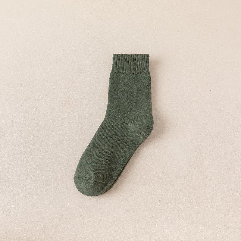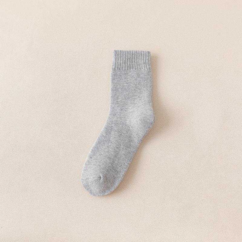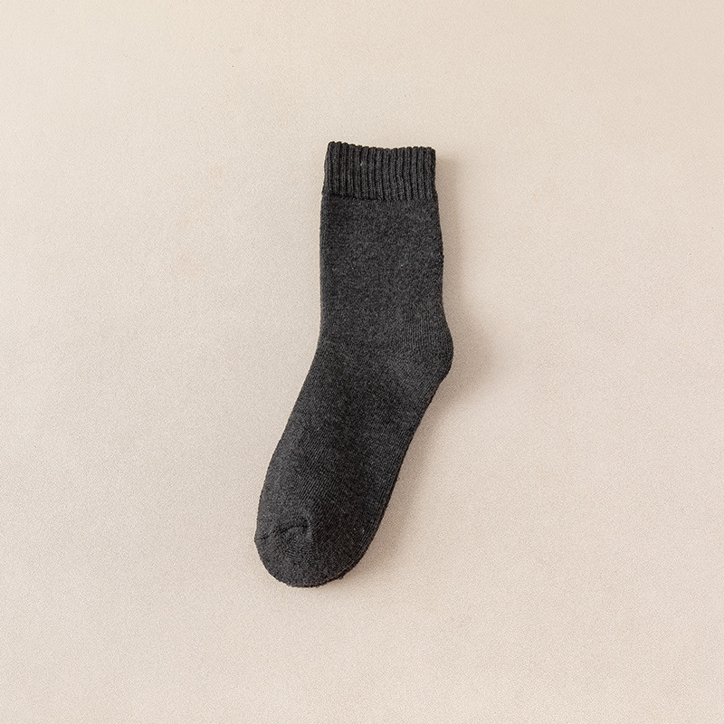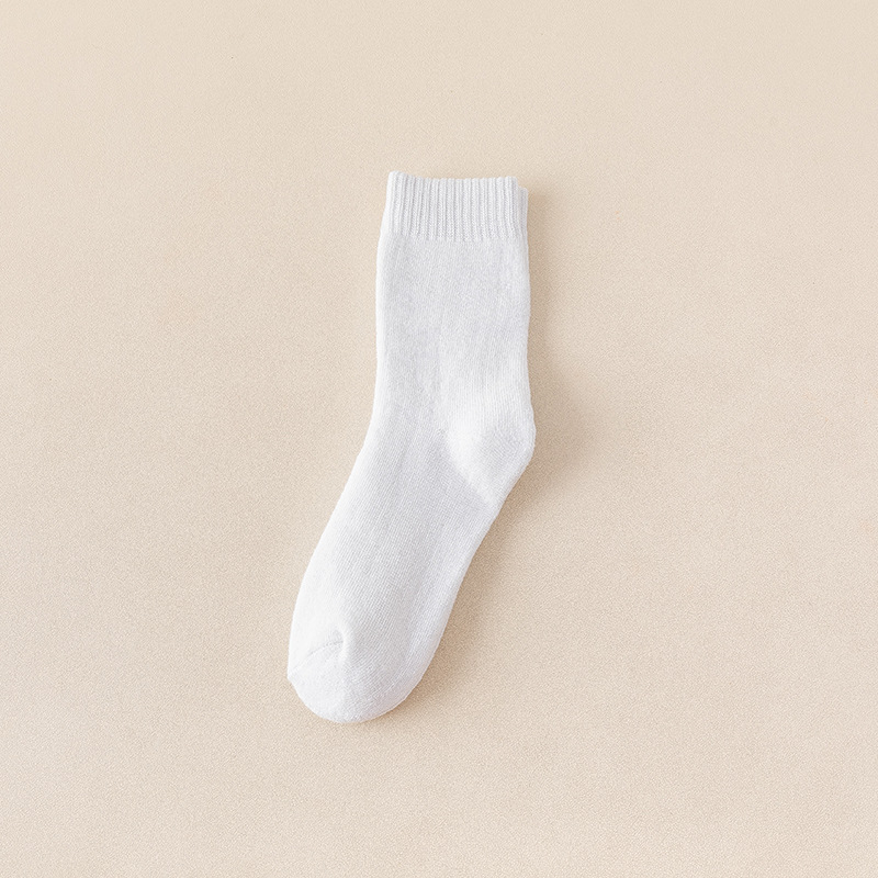 袜子女冬季加绒加厚中筒袜纯色日系保暖毛巾袜黑色长袜潮毛圈袜女