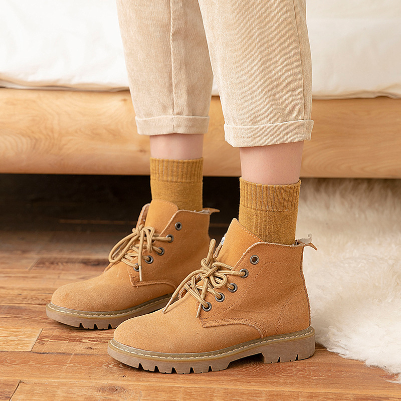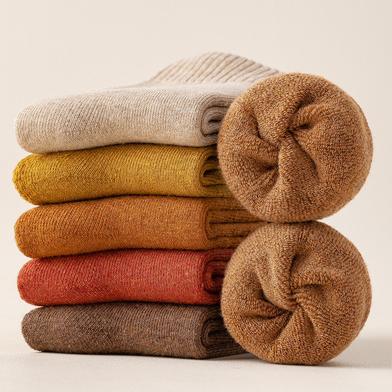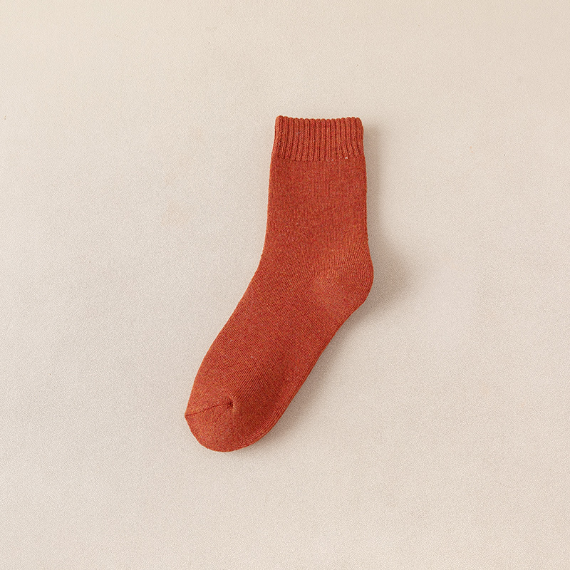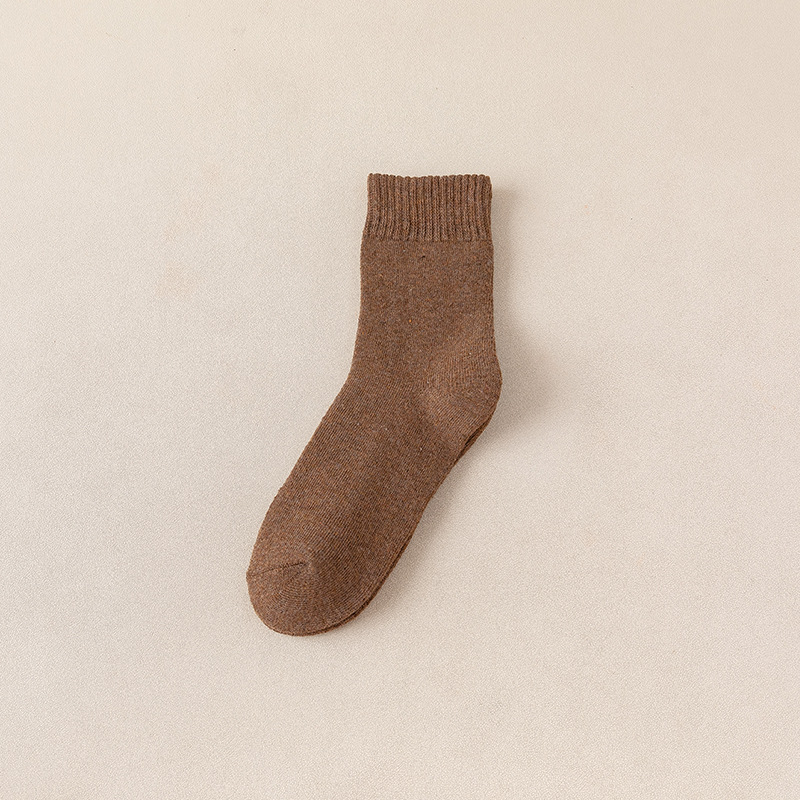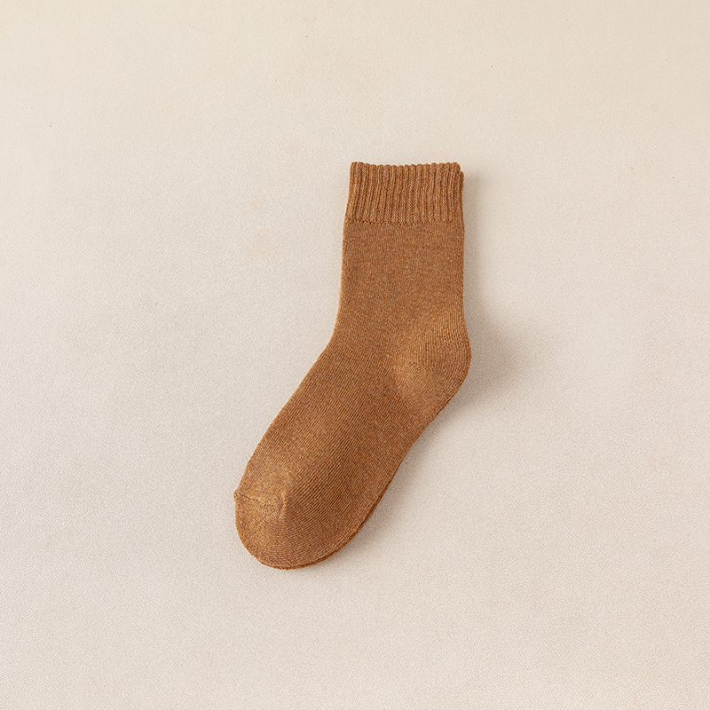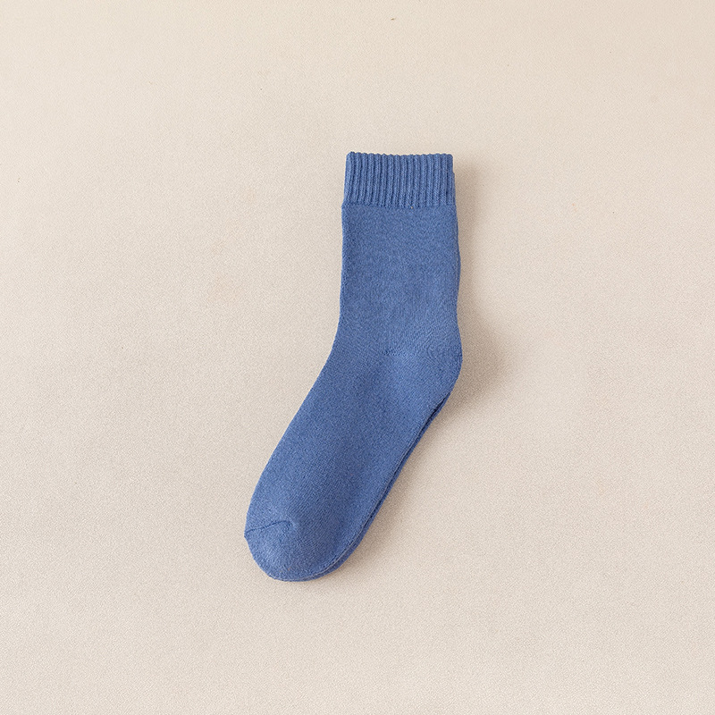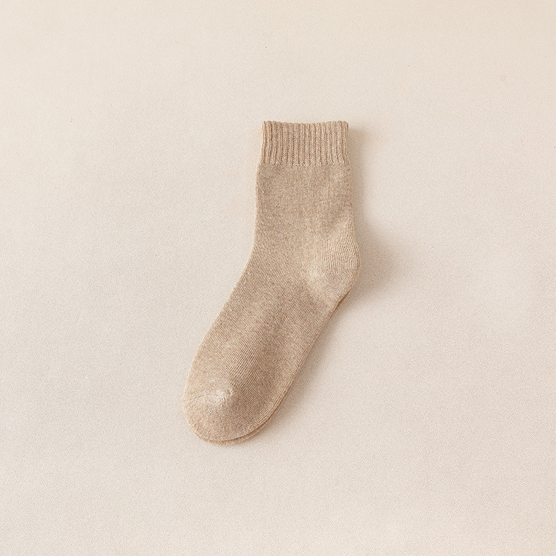 袜子女冬季加绒加厚中筒袜纯色日系保暖毛巾袜黑色长袜潮毛圈袜女