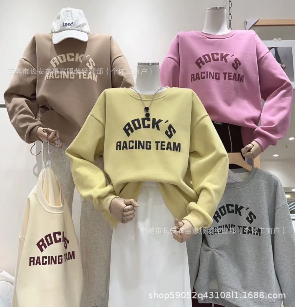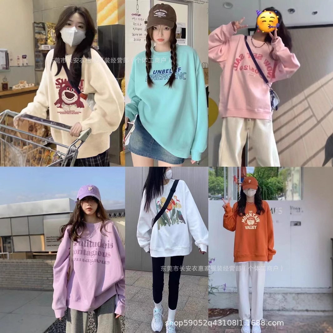 源头工厂百搭女装圆领卫衣2024秋冬韩版宽松大码女卫衣地摊杂款批