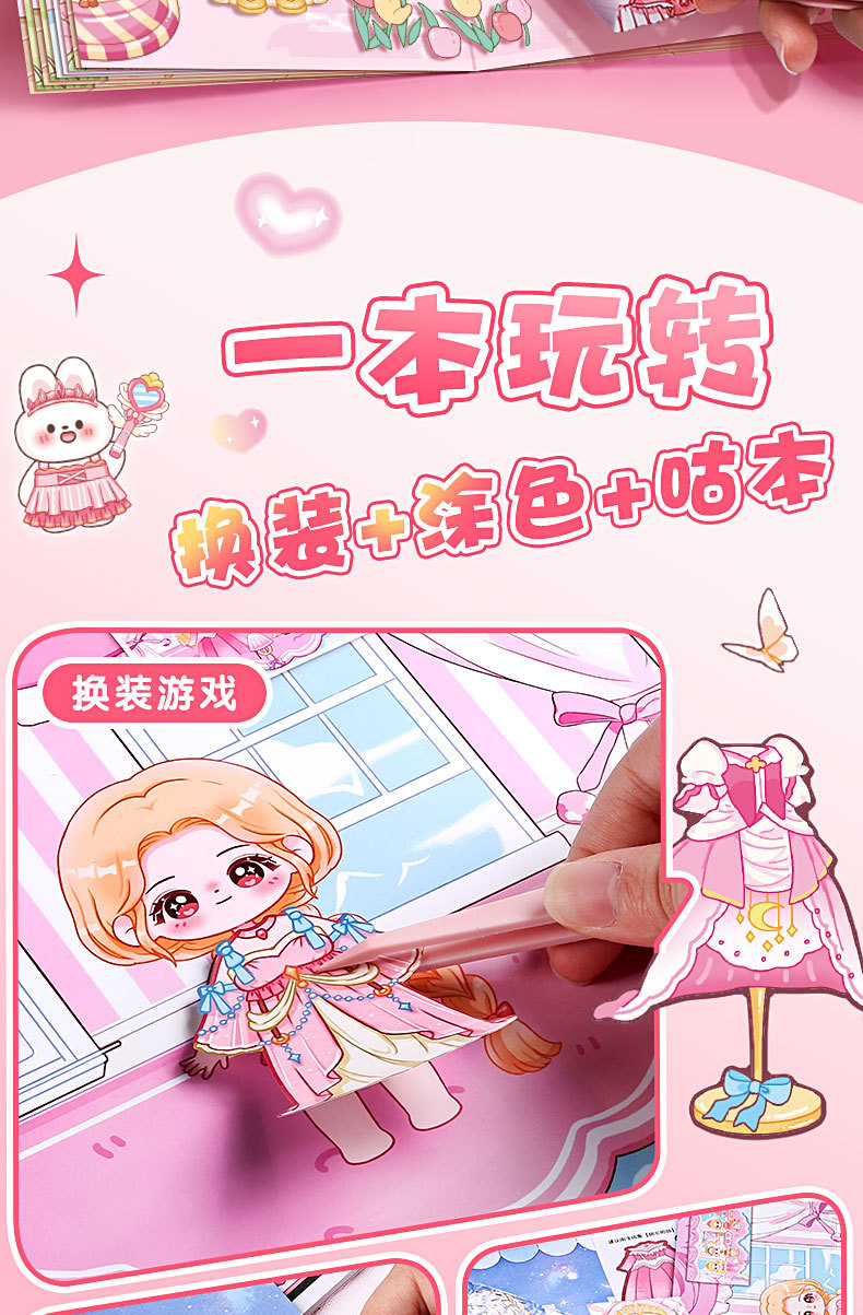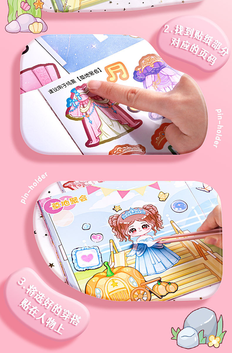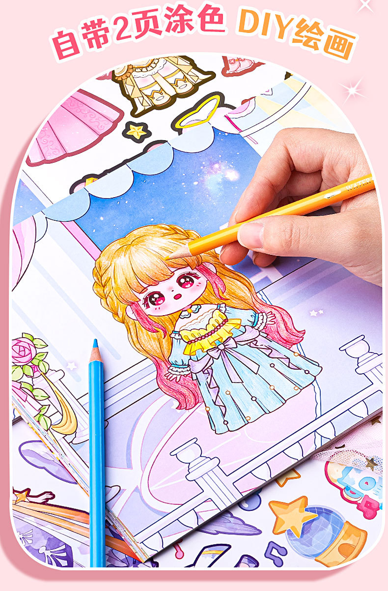 新款可爱少女换装贴纸本手账本随心配女孩手账自带两页diy涂色页