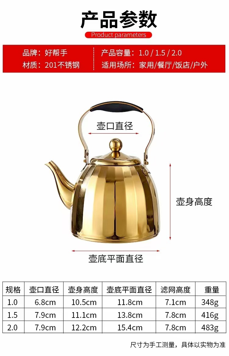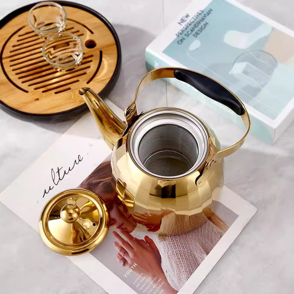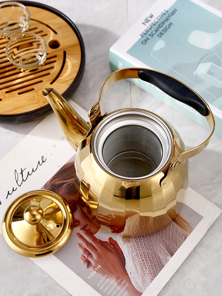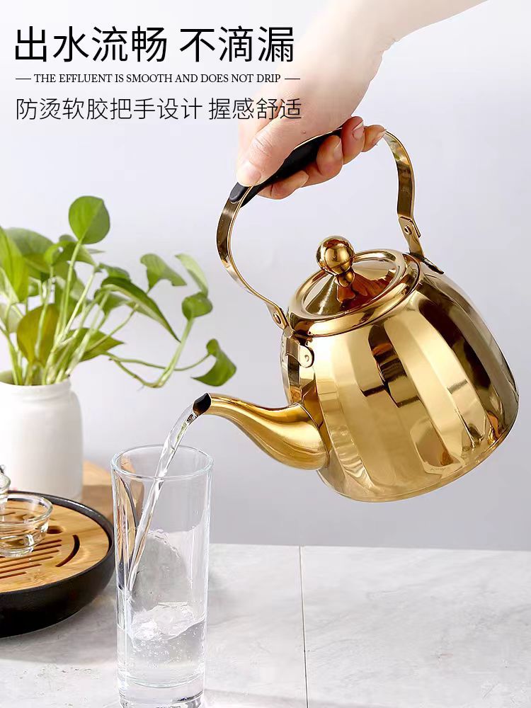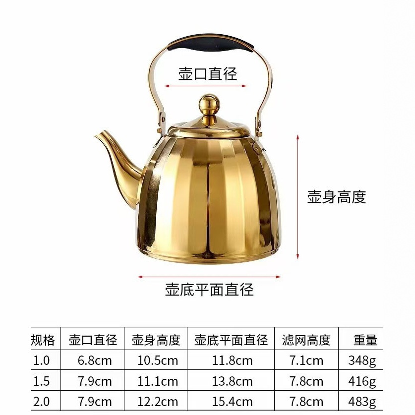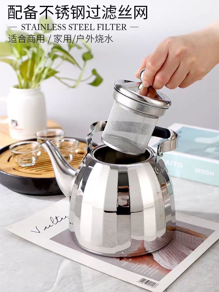 茶壶不锈钢酒店饭店餐厅用大茶壶带滤网长嘴提把水壶明火用泡茶壶