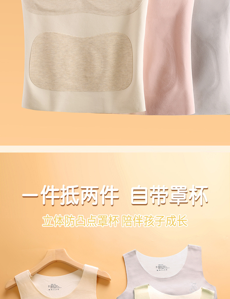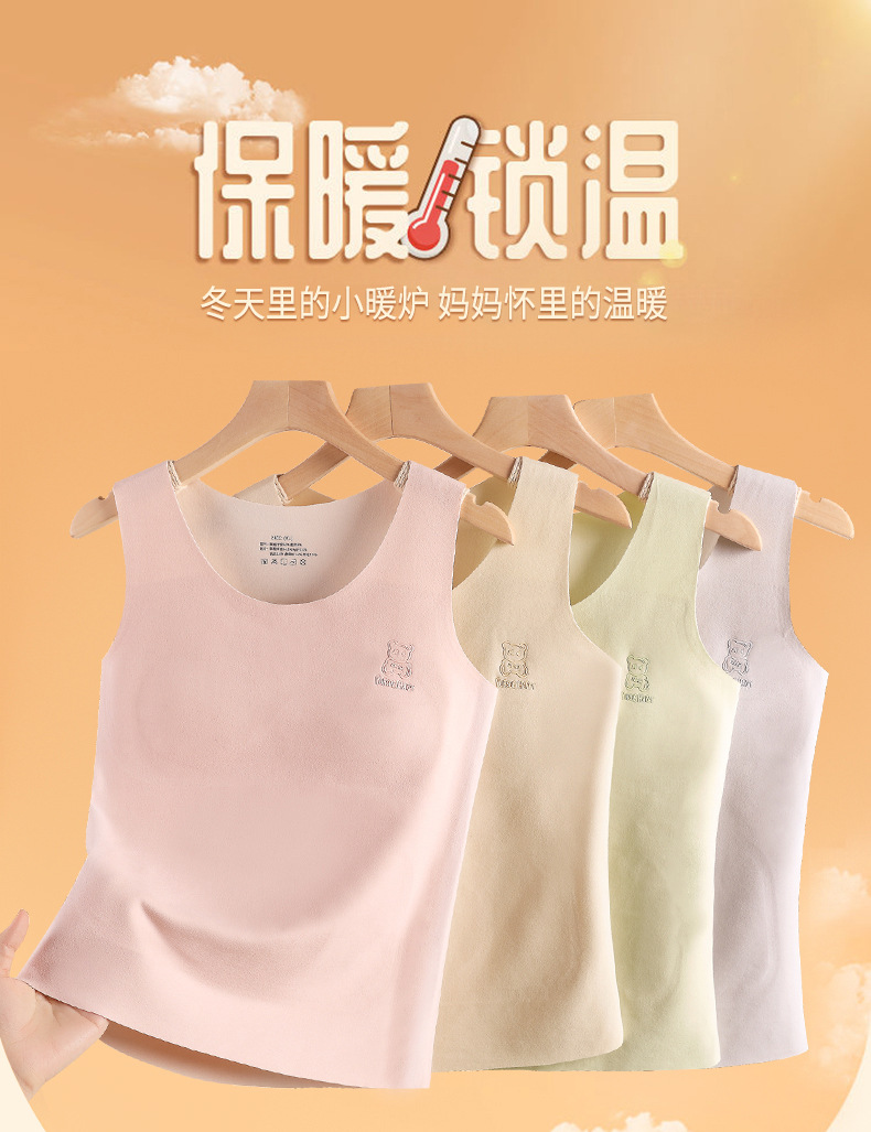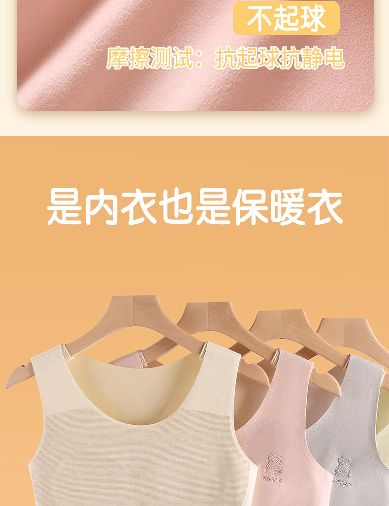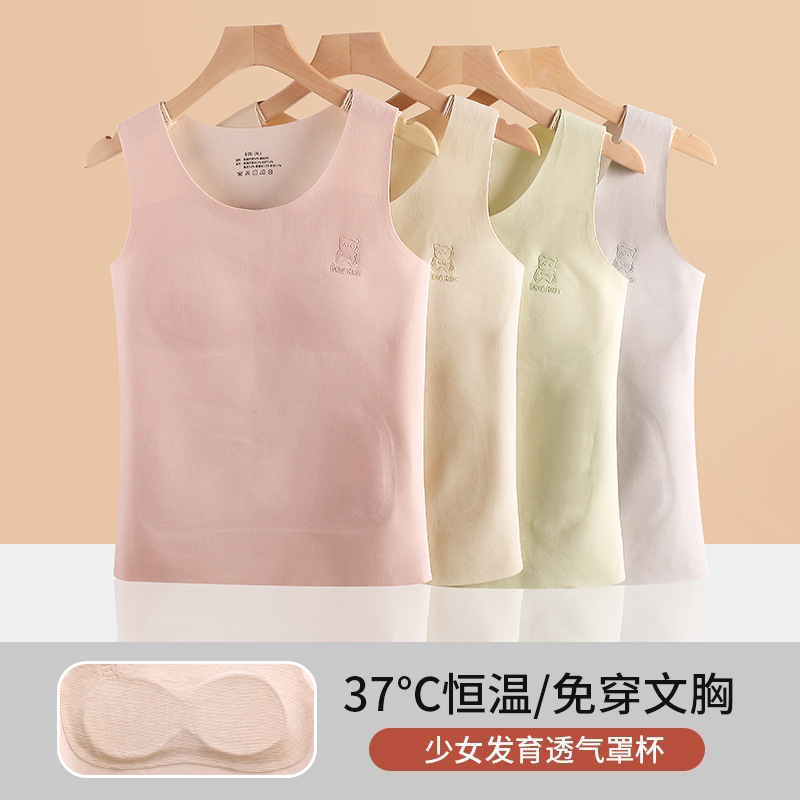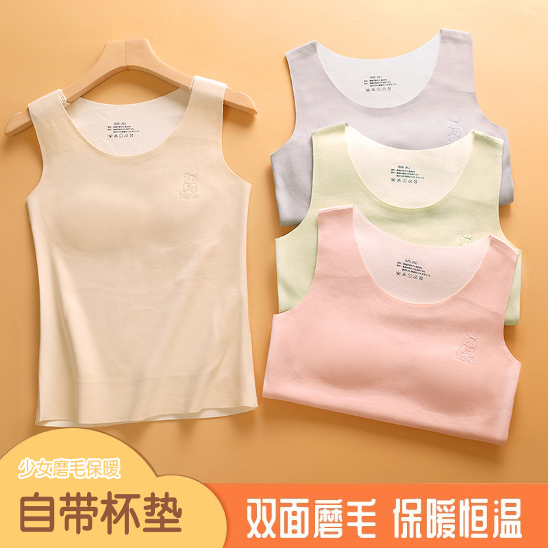 女童发育期德绒保暖背心加绒加厚少女无痕保暖内衣学生秋冬打底衫