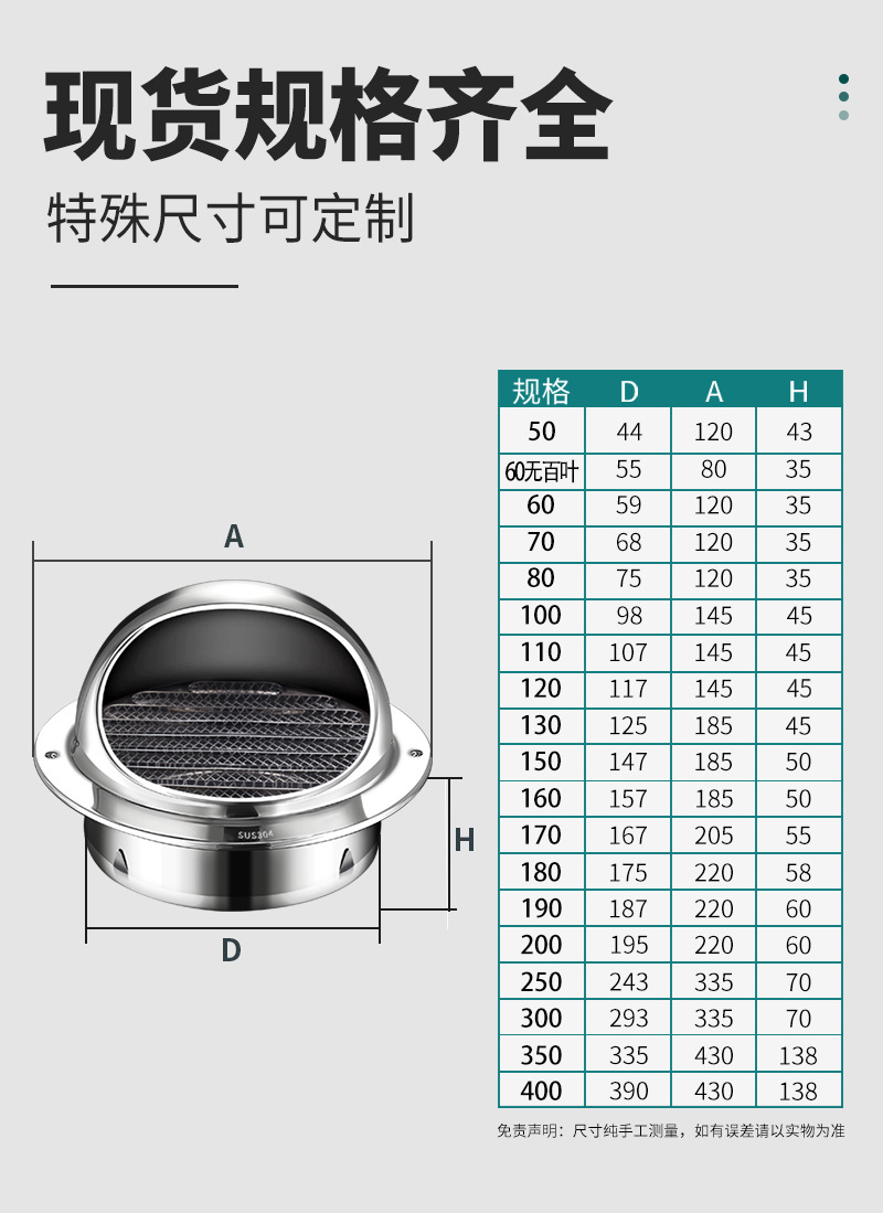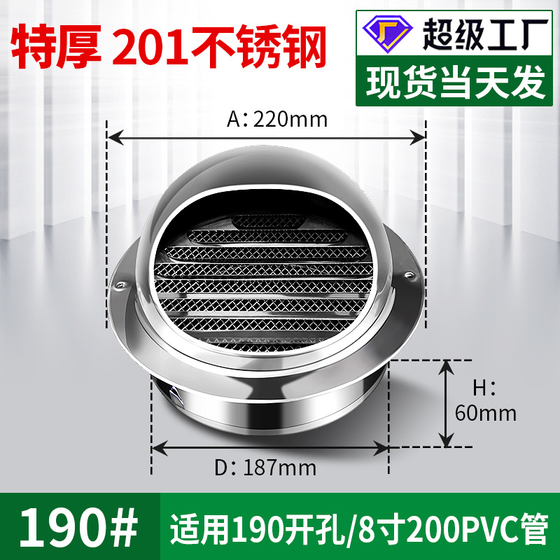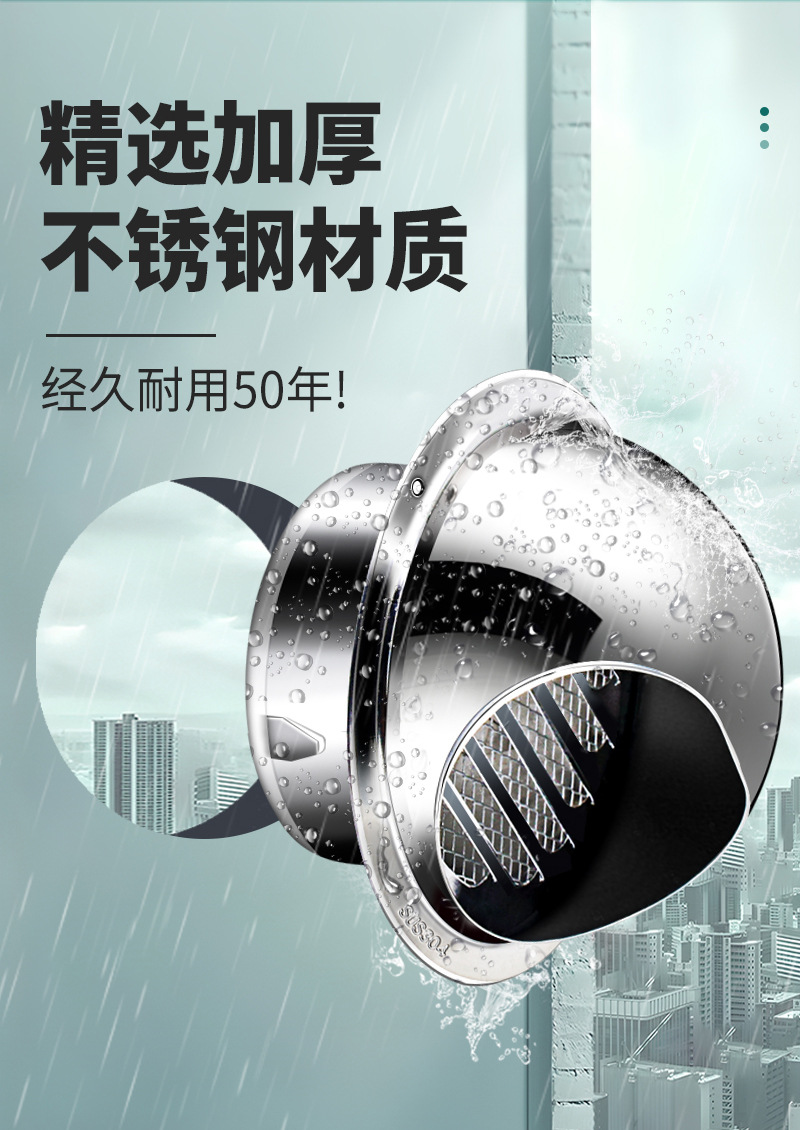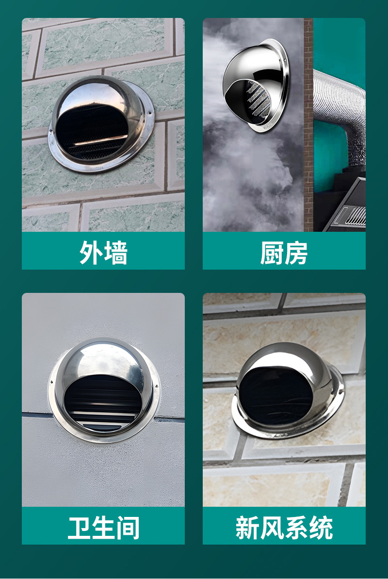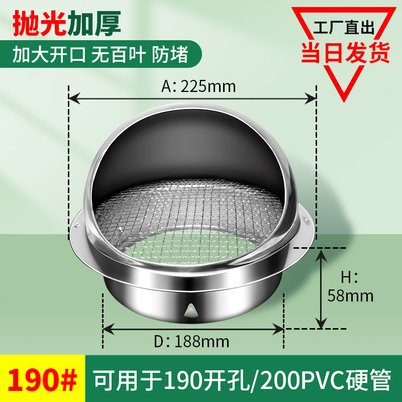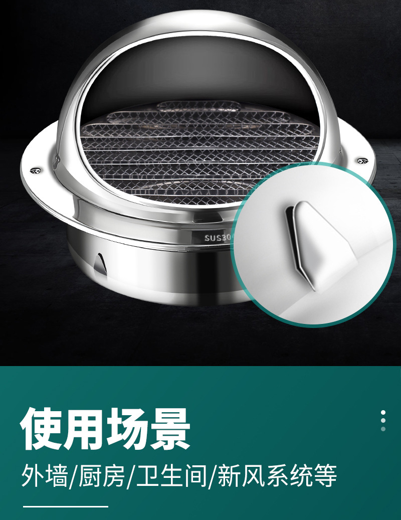 304不锈钢风帽防雨防风罩厨房卫生间外墙风口排气新风管罩通风帽