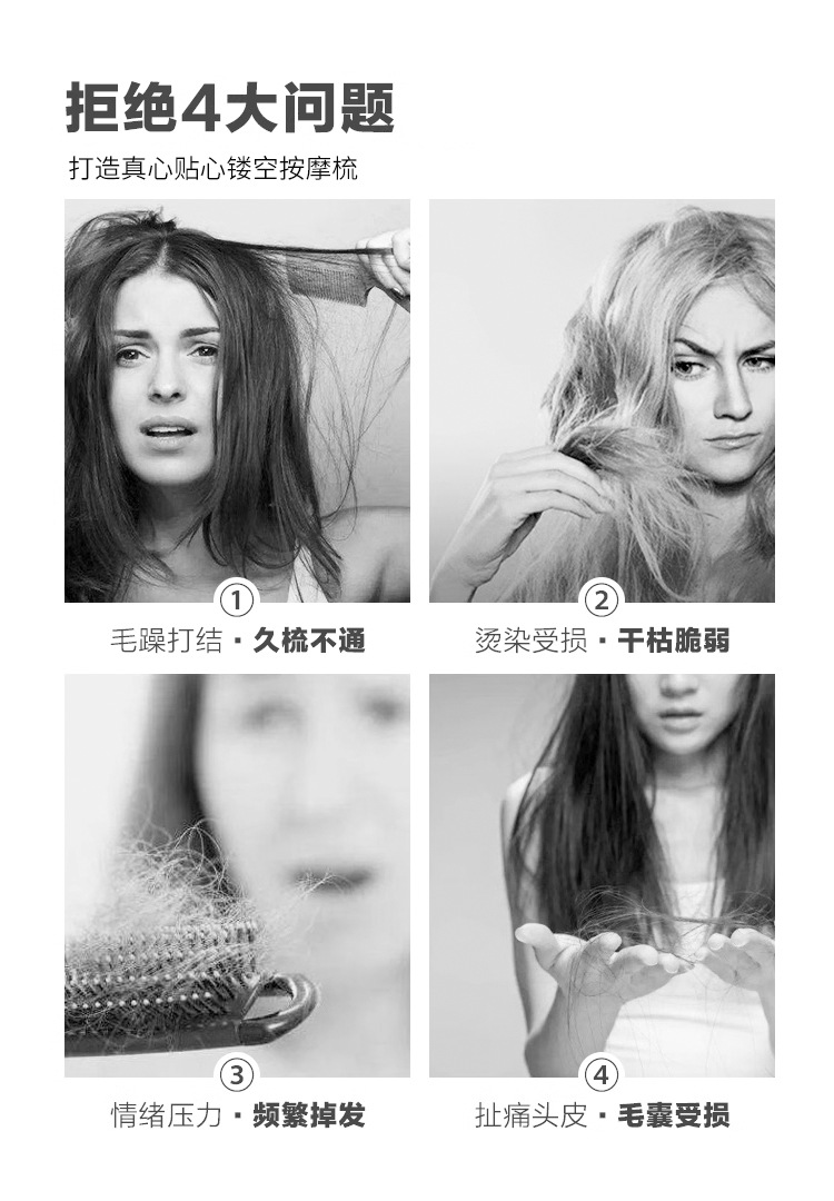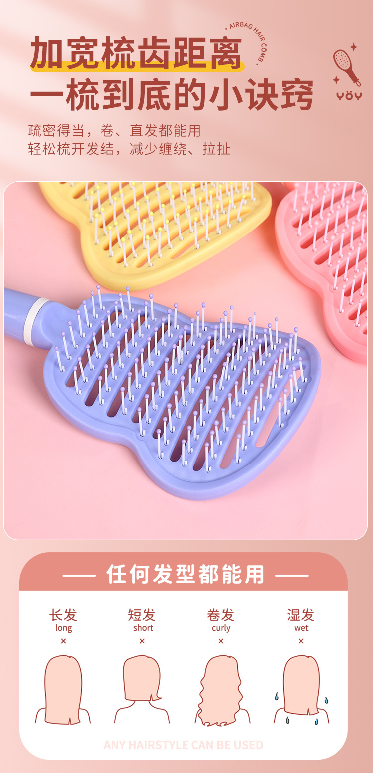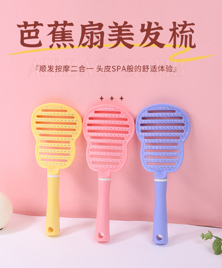 大弯梳蓬松高颅顶芭蕉扇梳子长发女专用造型按摩排骨镂空梳