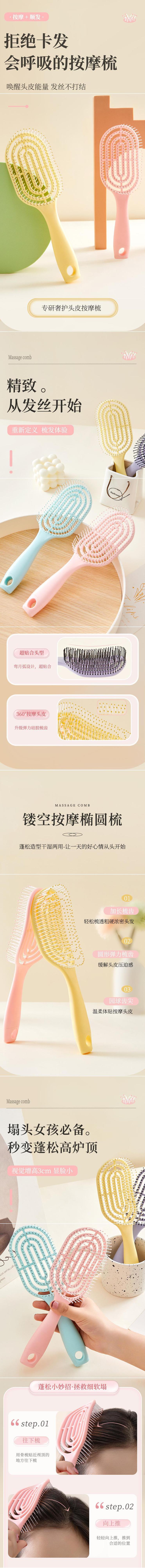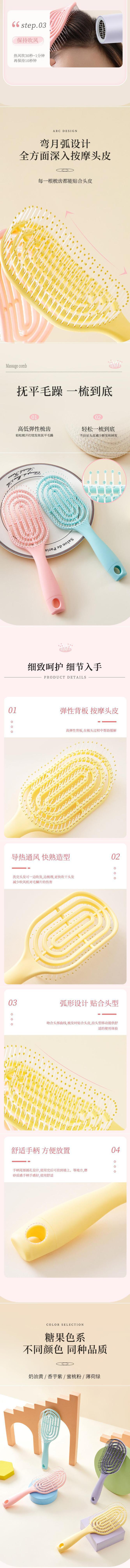 蓬松头发神器梳子造型镂空长柄回型梳卷发排骨梳按摩家用大弯梳女