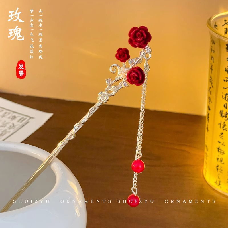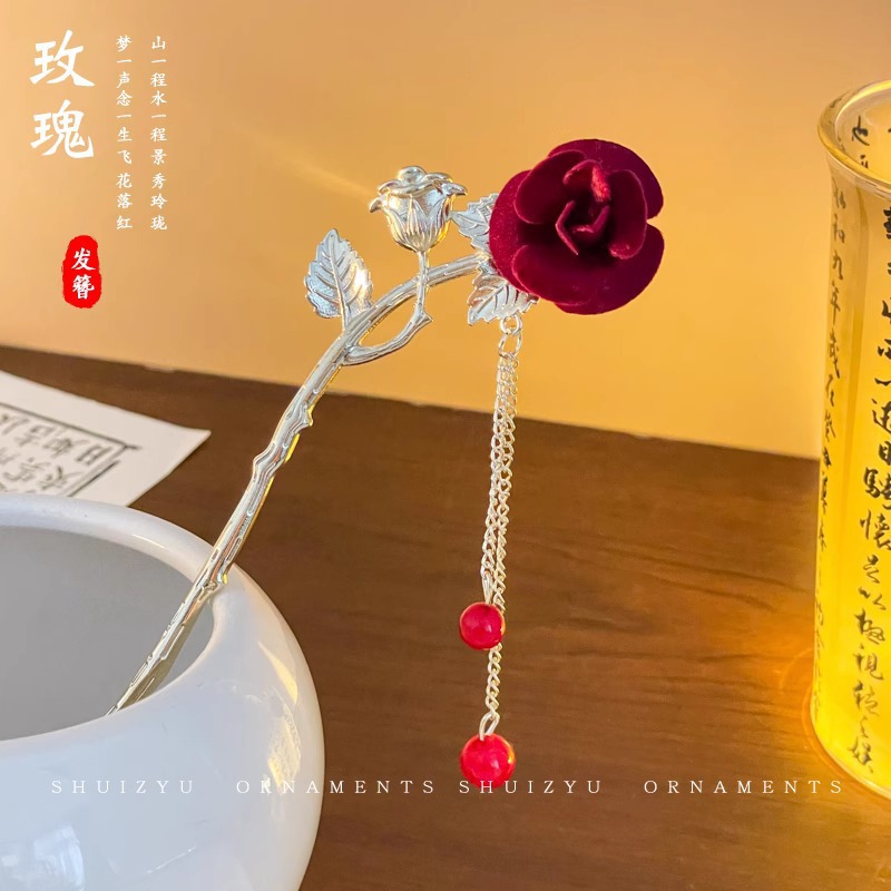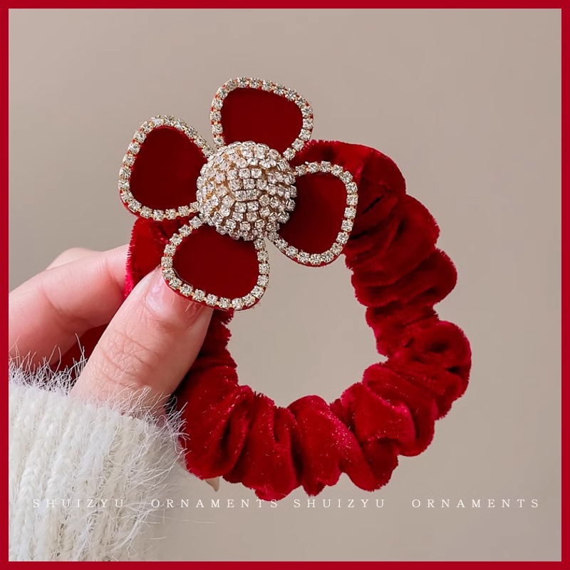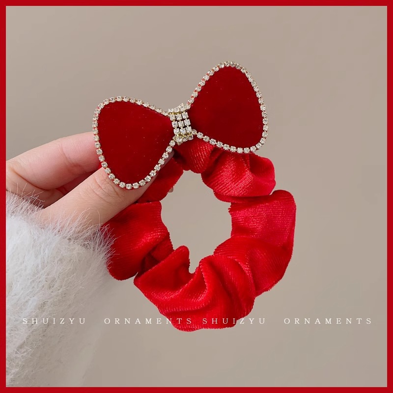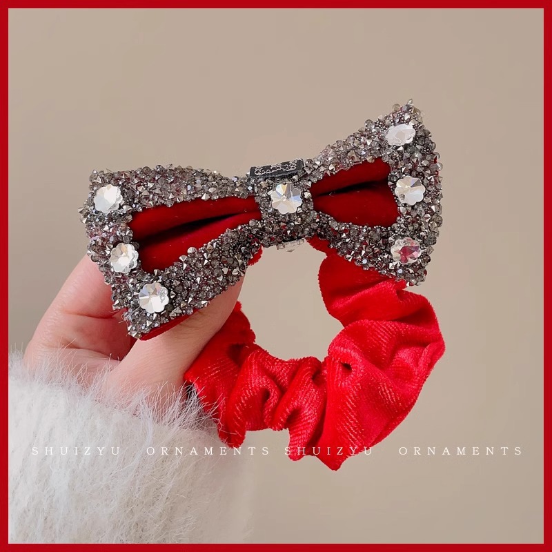 红色新年蝴蝶结发圈女发夹后脑勺气质发饰高级感2023新款夹子头饰